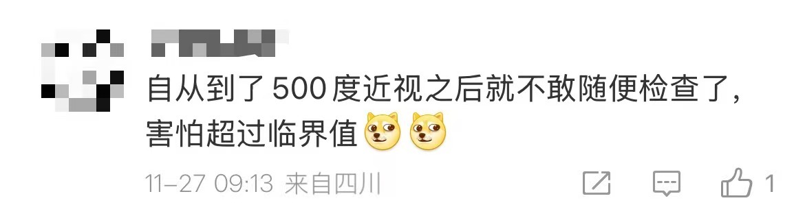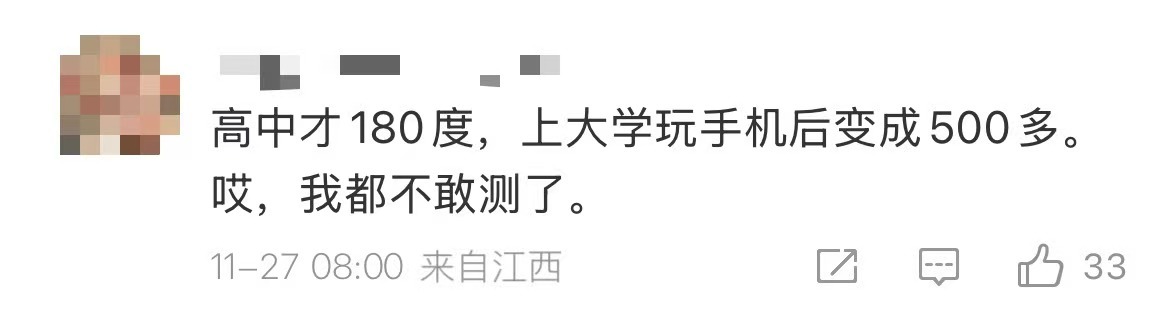 有网友表示,成年后近视度数确实增加了↓
