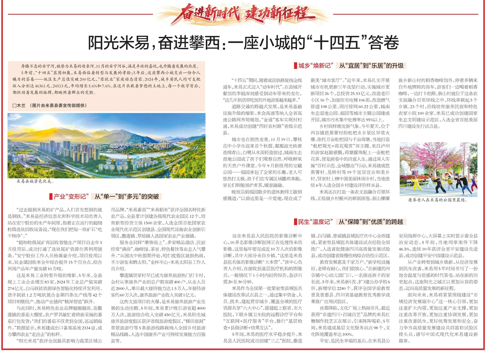 奔腾不息的安宁河,被誉为米易的母亲河。11月的安宁河谷,满是丰收的喜悦,也升腾着发展的热度。5年前,“十四五”蓝图初展,米易面临着转型与发展的考验;5年后,这座攀西小城交出一份令人瞩目的答卷。