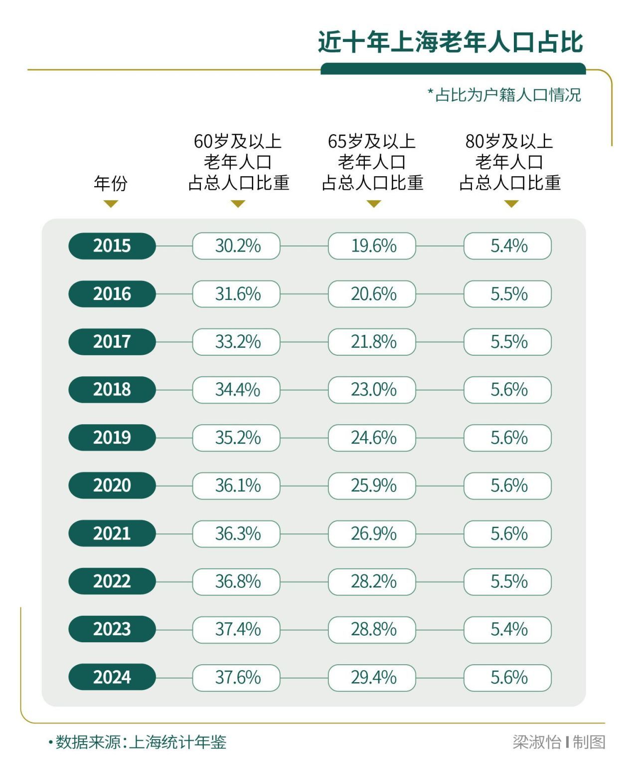 与此同时,数据预测显示,上海户籍老年人口2025年将增至585万,2031年前后达到峰值600万,其中高龄老人(80岁以上)2035年将突破180万。