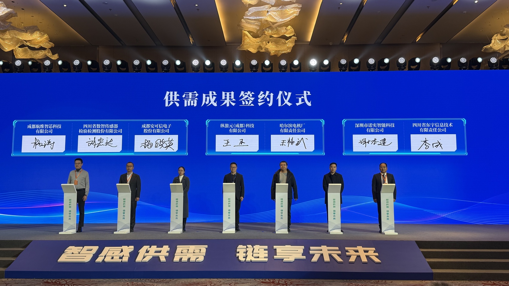 大会现场还进行了供需成果签约仪式,成都青羊经济开发区管委会、德阳高新技术产业开发区、无锡北微传感科技有限公司、成都市芯智界科技有限公司、四川军信航电智能系统技术有限公司等现场签约。