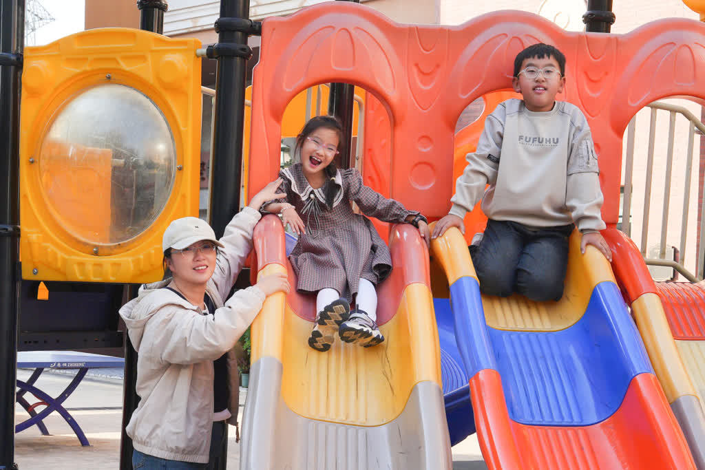 △ “北镜妈妈”刘思佳正与儿女嬉笑玩耍