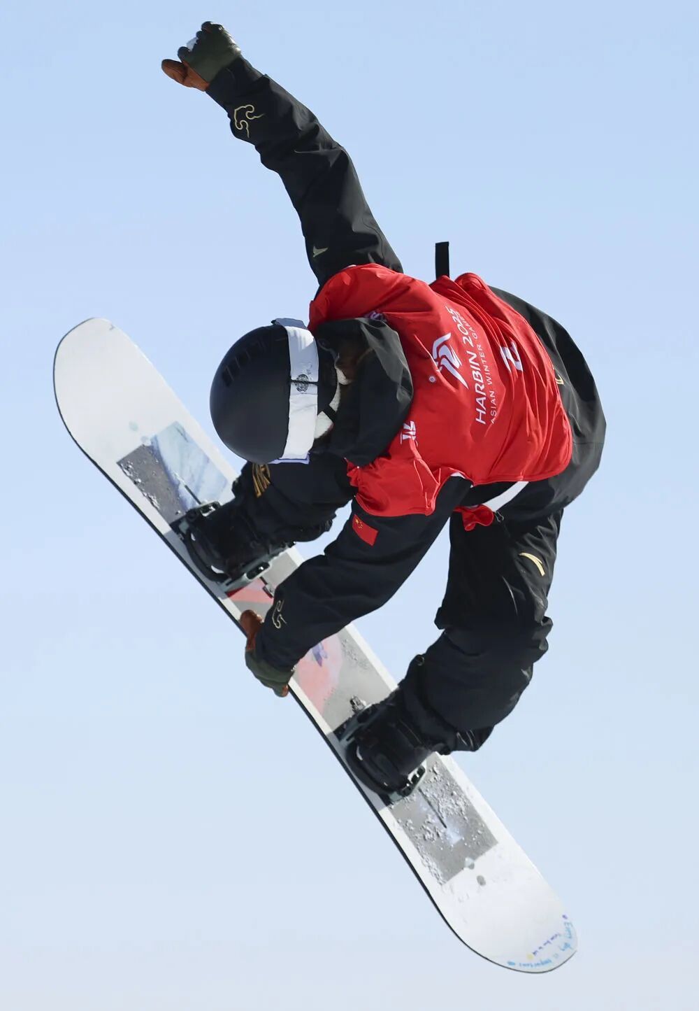 △ 熊诗芮在2025哈尔滨第九届亚洲冬季运动会单板滑雪大跳台项目比赛现场(图据新华社)