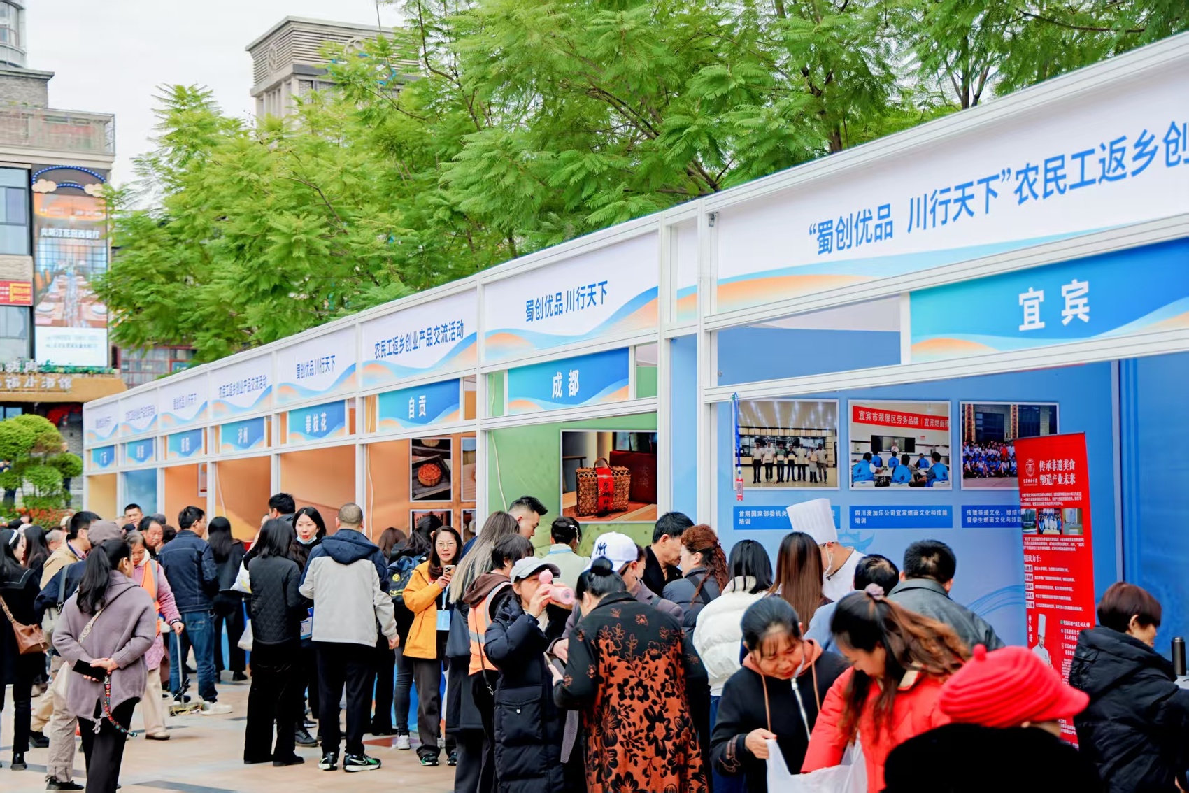 在“蜀创优品 川行天下”农民工返乡创业产品交流活动中,来自全省21个市(州)以及四川省返乡创业专业委员会的企业带来了近300种类别的特色产品,现场人气火爆。据不完全统计,参展企业总营业额超100万元,宜宾山勾勾鸡蛋、乐山马边“彝家黑妞”腊肉等特色农产品受到欢迎,充分展现了四川农民工返乡创业的澎湃活力与市场潜力。此外,服务周还上线了“蜀创优品 直播带货”宜宾专场,共展示销售29个商品。活动期间举办的创业沙龙和项目巡诊为返乡创业农民工提供了思路,进一步激发了农民工的创业热情。