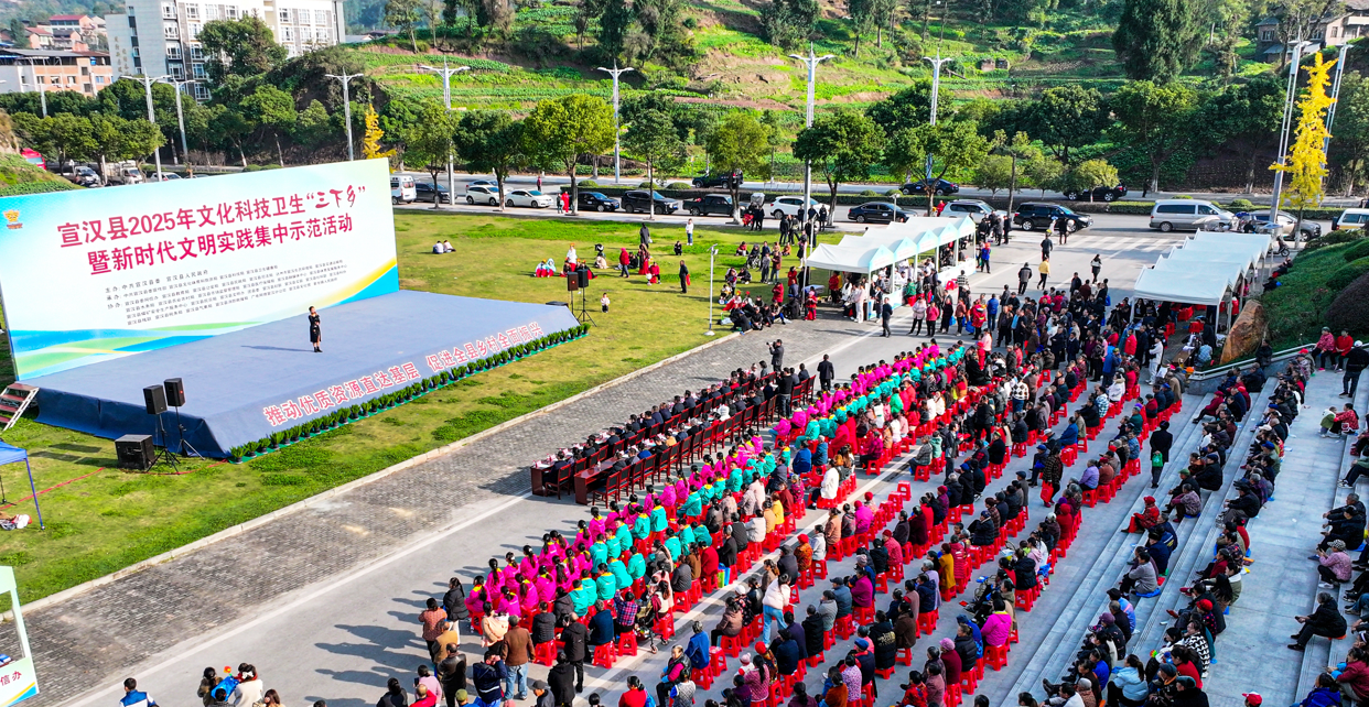 送戏到村头、送展到村口、送药到人手……11月27日,宣汉县2025年文化科技卫生“三下乡”暨新时代文明实践集中示范活动在普光镇启幕。文艺展演精彩纷呈,便民服务精准暖心,一场集文化盛宴、科技干货、健康关怀于一体的惠民“大集”,让乡亲们呼朋引伴、满载期待而来,尽享家门口的幸福滋味。