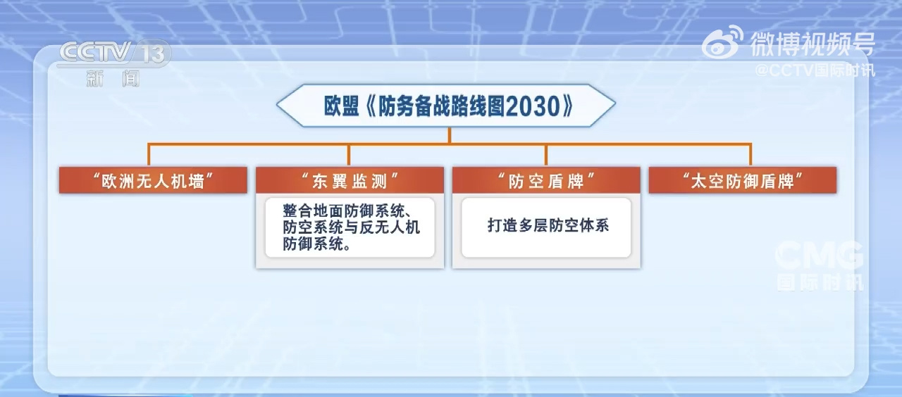 欧盟则在推动一个听起来很牛的计划——“欧洲无人机墙”。这个计划已经写进了欧盟的《防务备战路线图2030》,目标是在2027年底前,建成一套完整的低空防御系统。