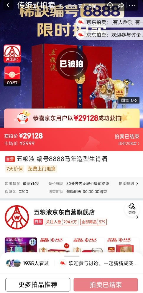 编号8888马年生肖酒,以29128元成交!