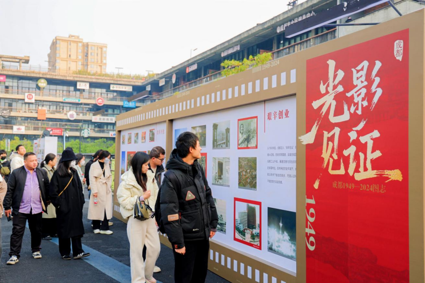 与此同时,成都城市影像展在成都西村大院同期开展,展览精选了140余幅珍贵照片,通过“古城新生”“艰辛创业”“改革开放”“鹏程万里”四个篇章,以视觉叙事的方式带领观众穿越成都75年的发展历程。影像展为期三天,展览时间为11月28日至30日。