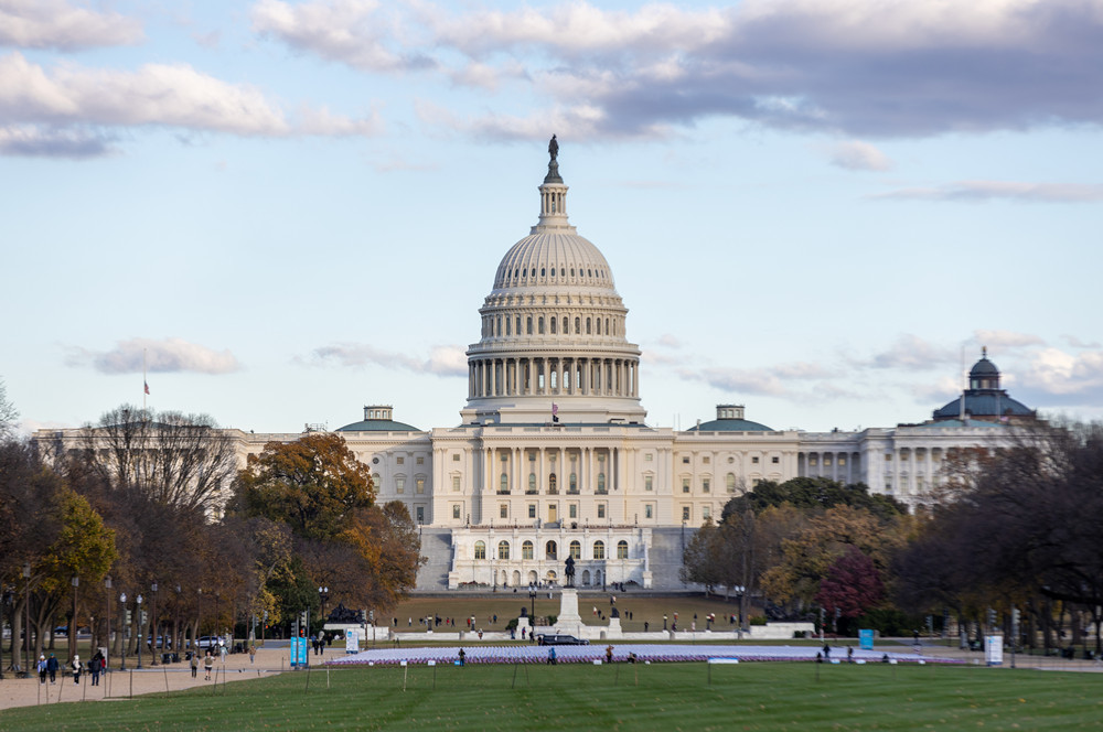 11月10日在美国首都华盛顿拍摄的美国国会大厦降半旗。图据新华社