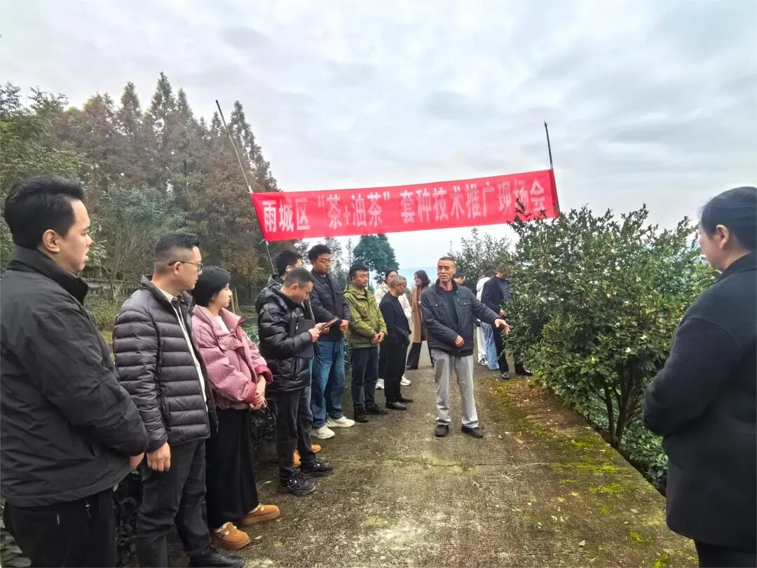 近日,雅安市雨城区茶+油茶套种技术推广现场会在草坝镇徐坪村举行。会议采用现场观摩、技术讲解与座谈交流相结合的方式,集中展示并推广“茶+油茶”套种模式,旨在推动全区油茶产业提质增效,助力乡村振兴与粮油安全。