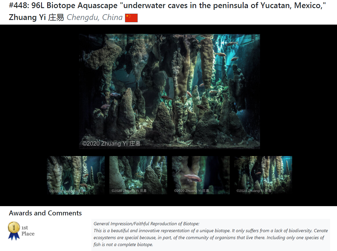 1月19日,记者从美国AGA(Aquatic Gardeners Association)官网获悉,2020年度的AGA国际水草造景大赛上,西昌小伙庄易(现居成都)拿下原生缸比赛的第一名,另有来自广东的选手拿下水陆缸第一名。