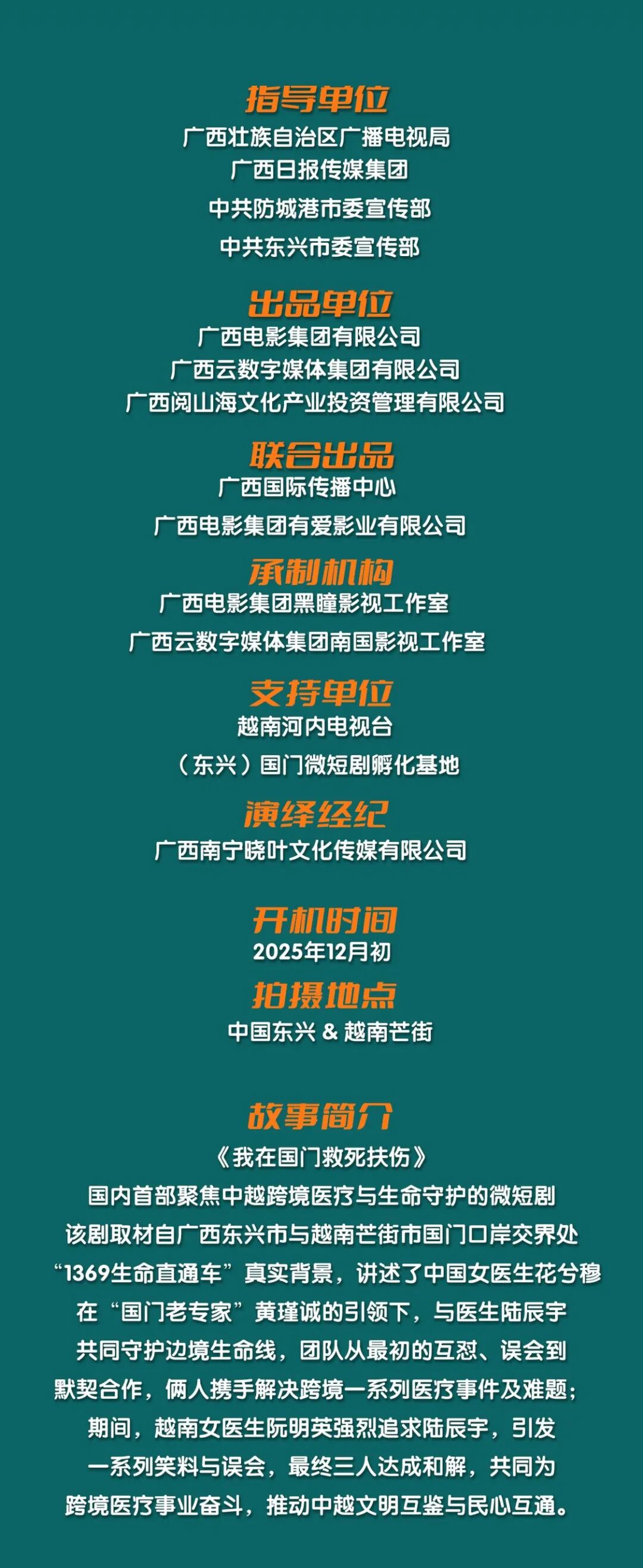 该剧由广西电影集团、广西云数字媒体集团和广西阅山海文化产业投资管理有限公司等联合出品,广西国际传播中心、越南河内电视台和国门微短剧孵化基地等单位机构支持。
