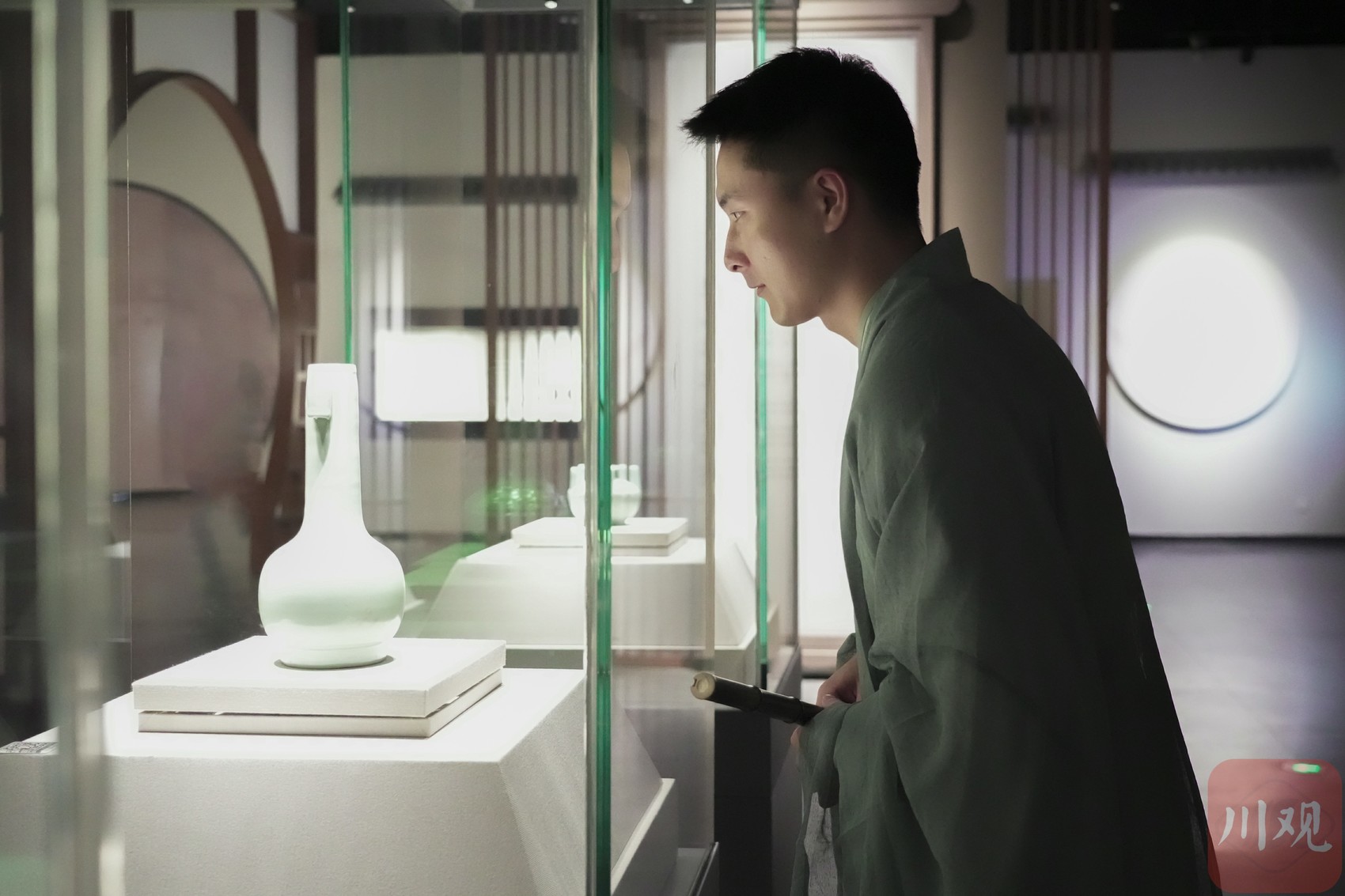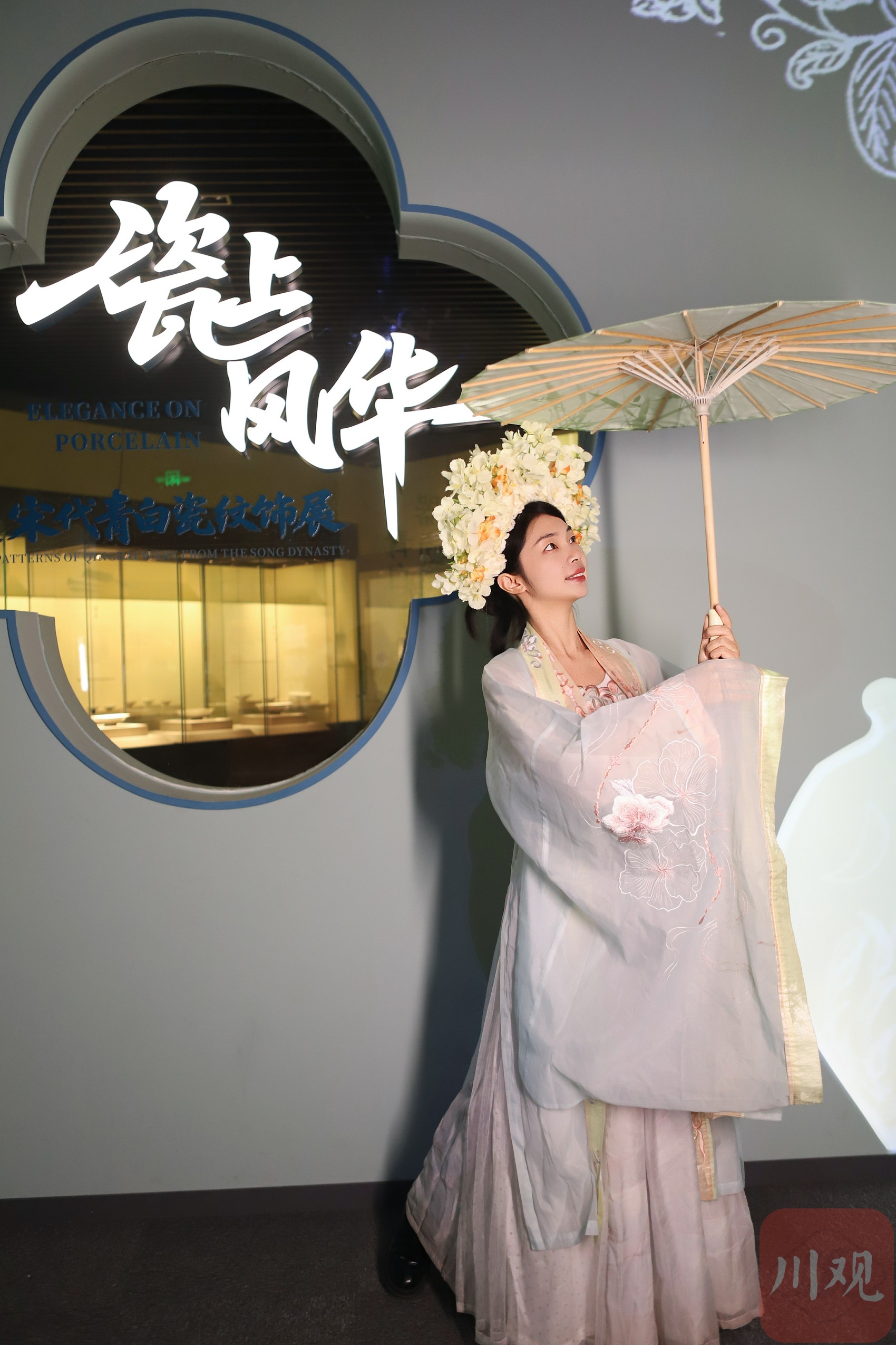 作为博物馆系列活动的重磅场次,本次活动紧扣“让宋瓷之美与传统文化活起来”的理念,创新解锁宋文化体验新范式。四川宋瓷博物馆打造6大宋瓷主题拍摄场景,以青、蓝、白三色勾勒宋瓷经典质感,布景设计贴合馆藏文物的历史韵味与美学特质,游客随手就能定格古风大片,沉浸式感受“入画宋瓷”的雅致意境。