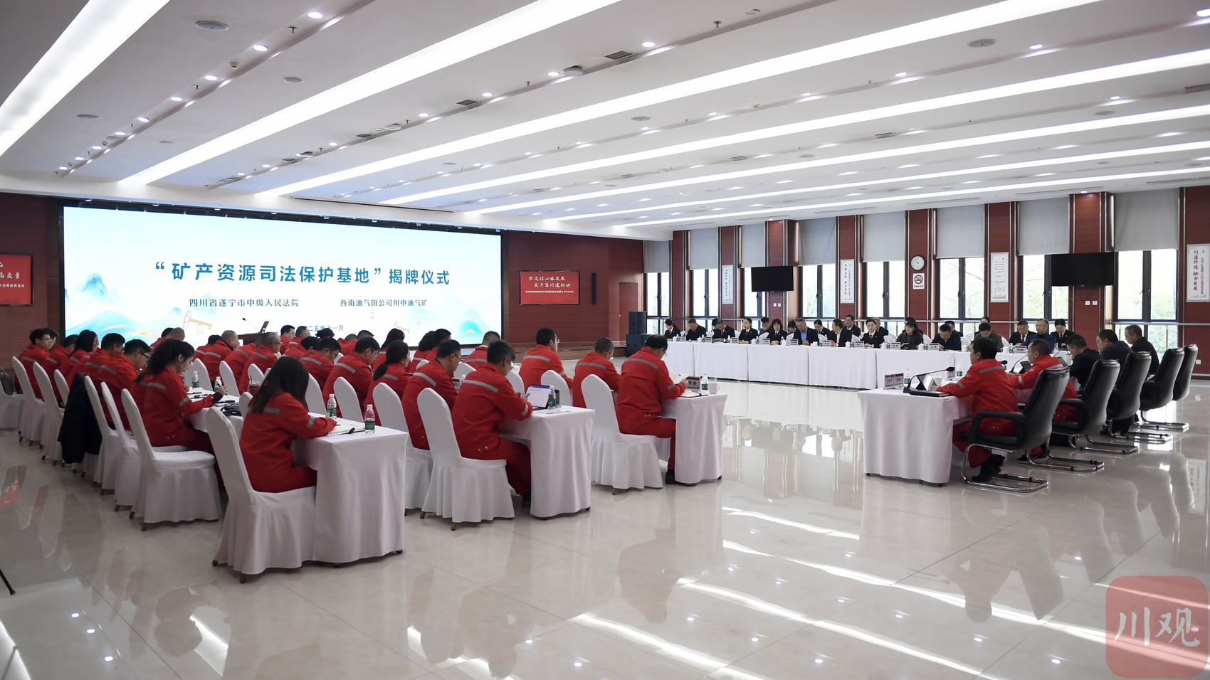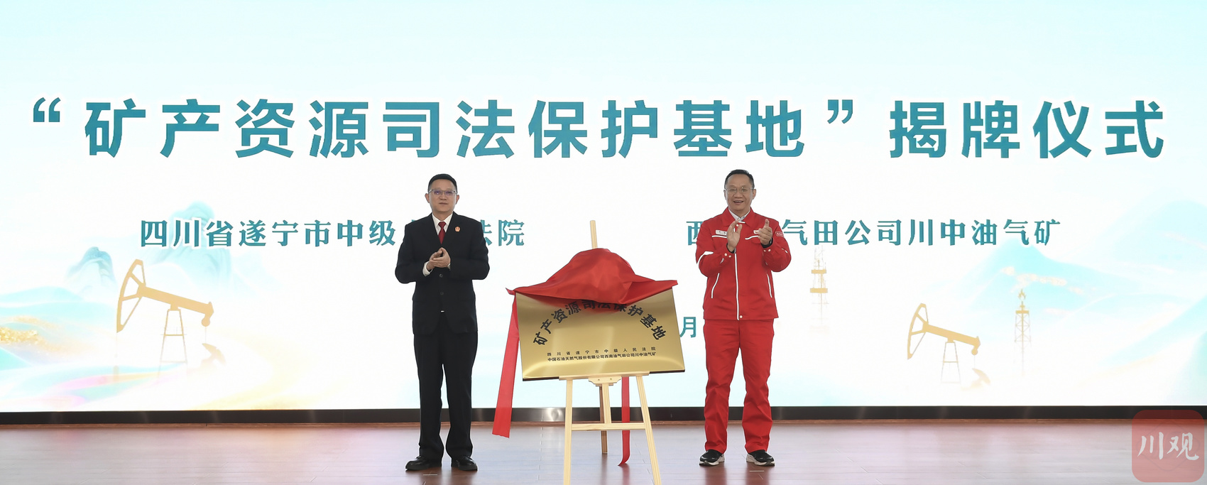 11月28日,遂宁市中级人民法院与中国石油西南油气田分公司川中油气矿共同举行“矿产资源司法保护基地”揭牌仪式,并开展专题法治宣讲。