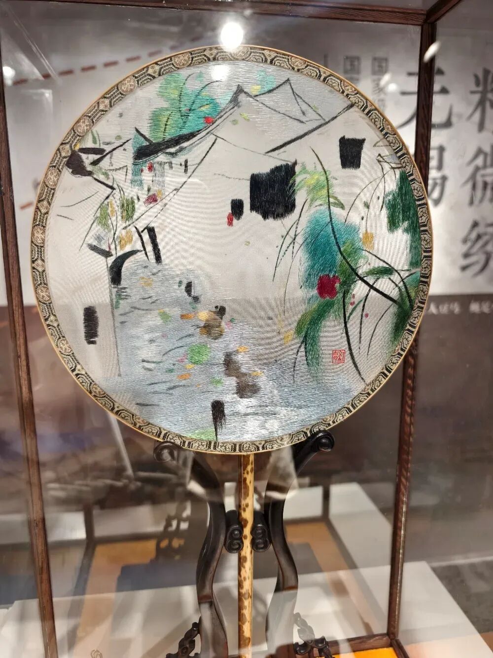 在她身旁,一把为春晚定制的双面绣团扇熠熠生辉,这把扇子正反两面皆可观赏,江南景致如一幅山水画在扇面上流淌。