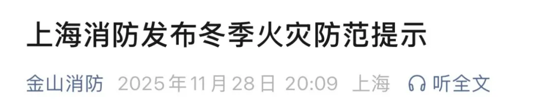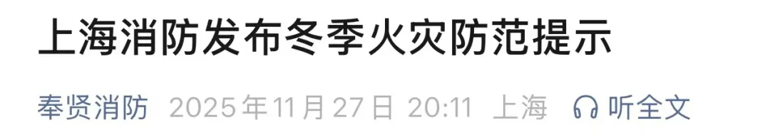 11月26日,香港大埔区宏福苑发生火灾后,上海市消防救援局当晚紧急调度全市消防力量,对在建工地与高层建筑的火灾防范及应急处置工作进行再部署、再强调。各区消防部门迅速行动,全面排摸在建工地和既有建筑修缮工程现状,针对性开展火灾风险提示,强化施工现场消防安全管理。