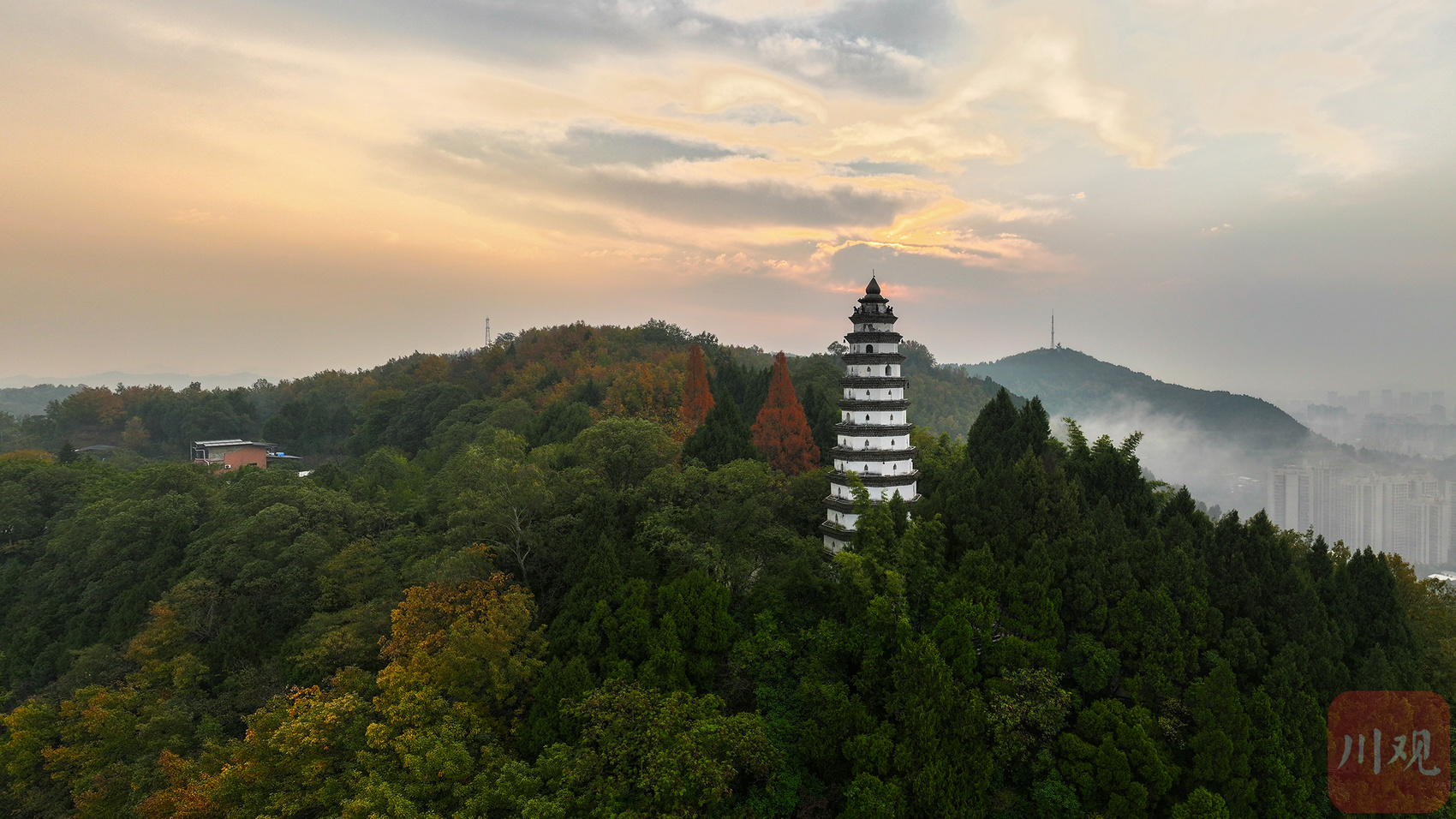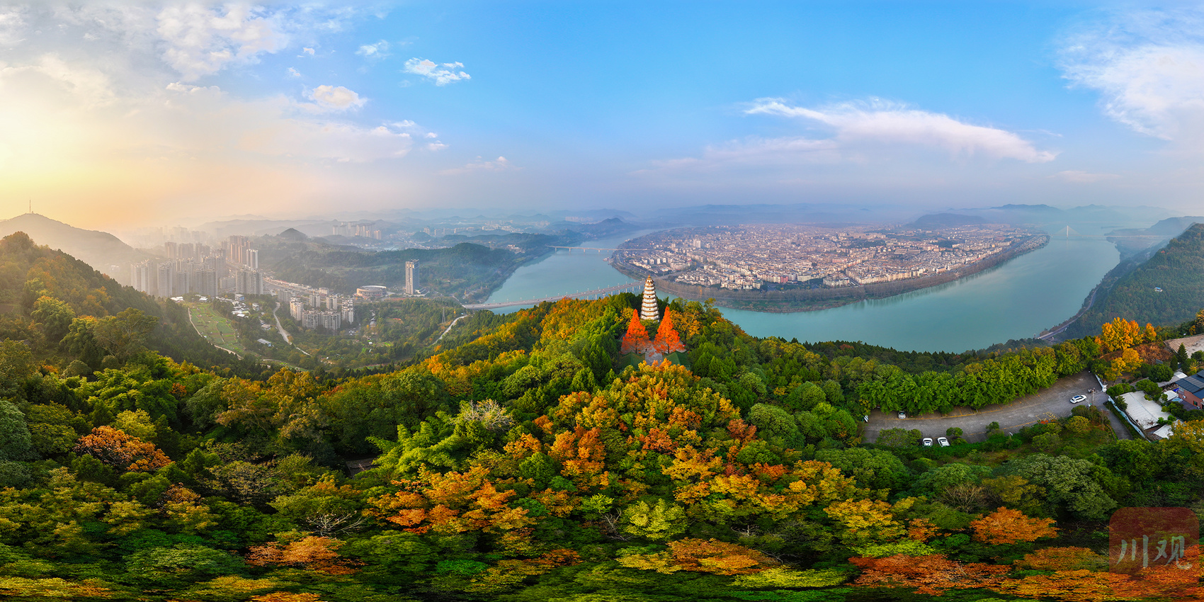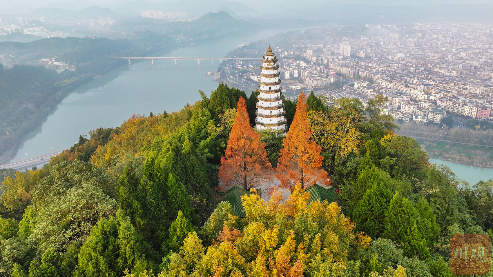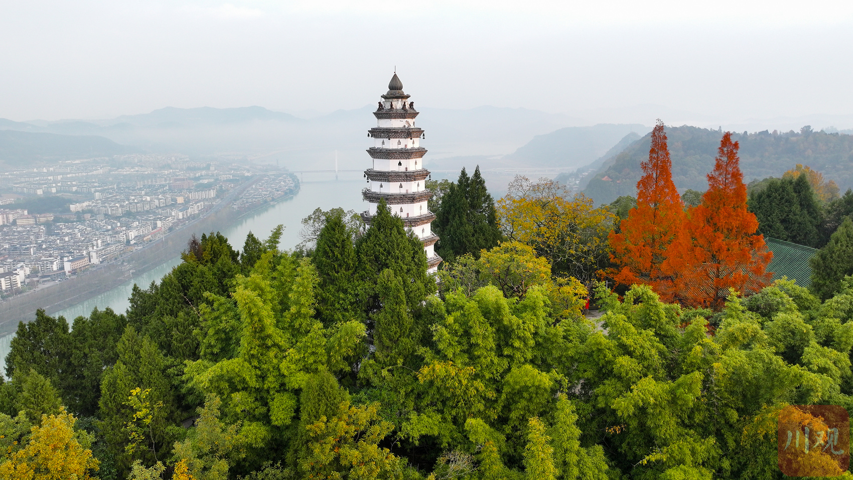 晨雾漫卷红杉火,白塔迎曦照阆州。这抹冬日限定的治愈,是四川山水藏不住的温柔!