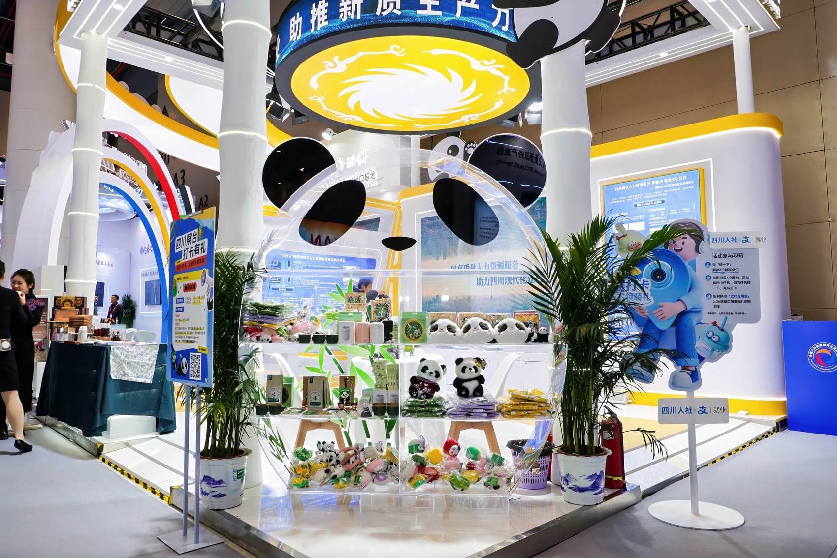 金沙太阳神鸟振翅欲飞,熊猫哪吒组合萌动全场。在武汉光谷科技会展中心内,川味十足的人力资源服务创新成果吸引无数目光,四川展台成为大会一道亮眼的风景线。