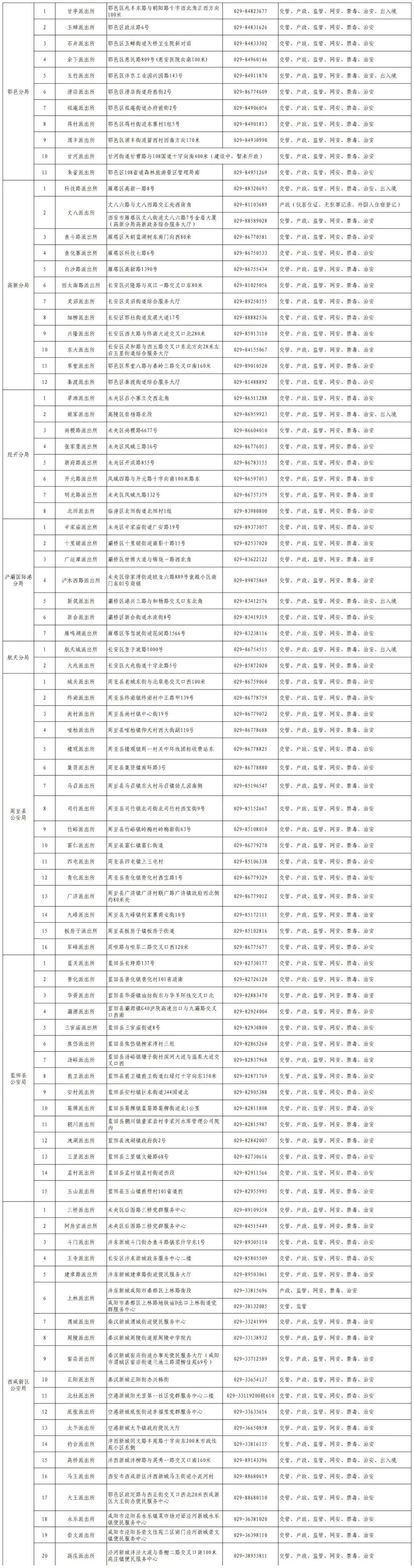 关于全市公安机关办事网点
