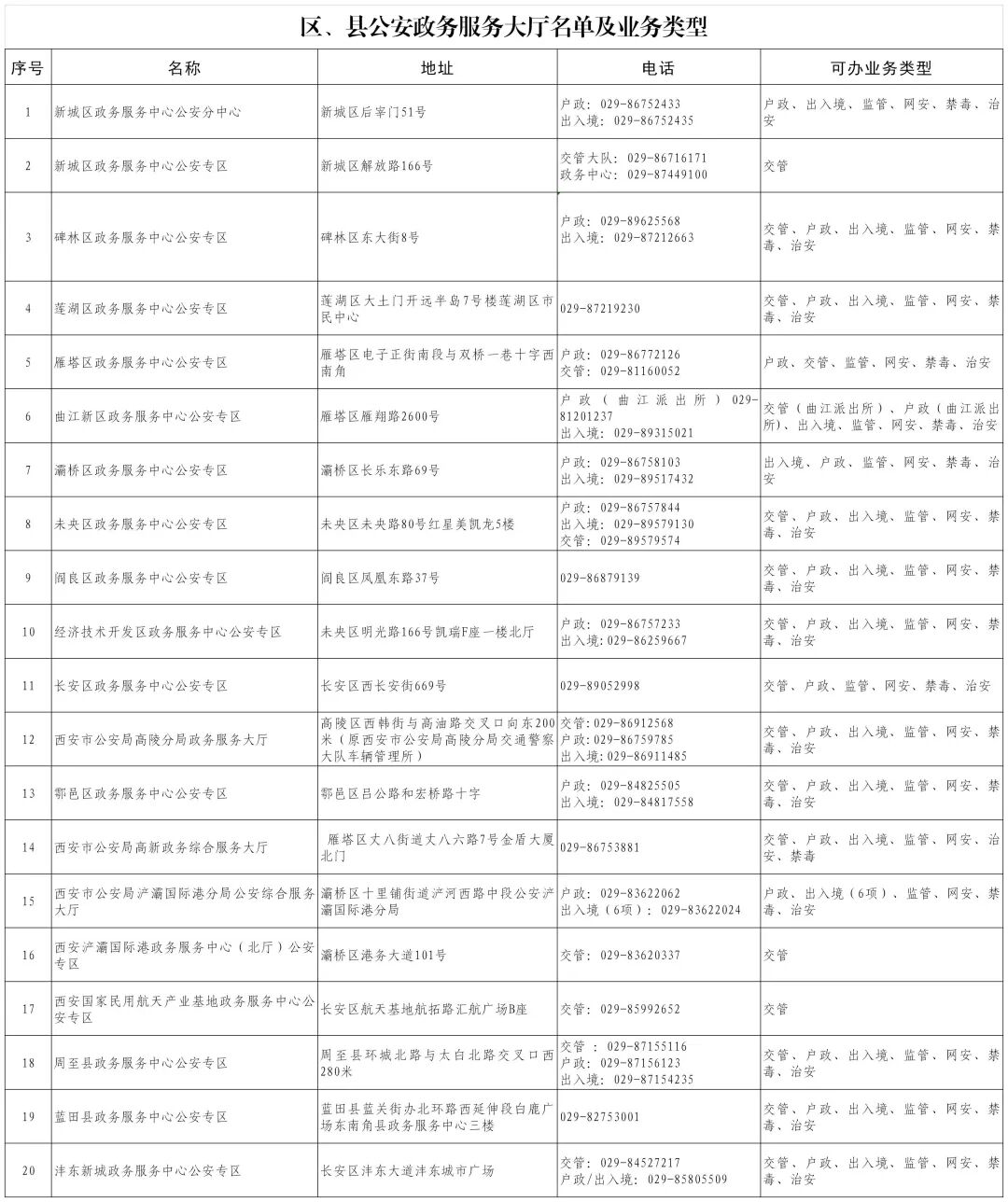 现将公安办事网点及公安政务服务事项情况公告如下(上下滑动可查看全部内容,点击保存图片可放大):