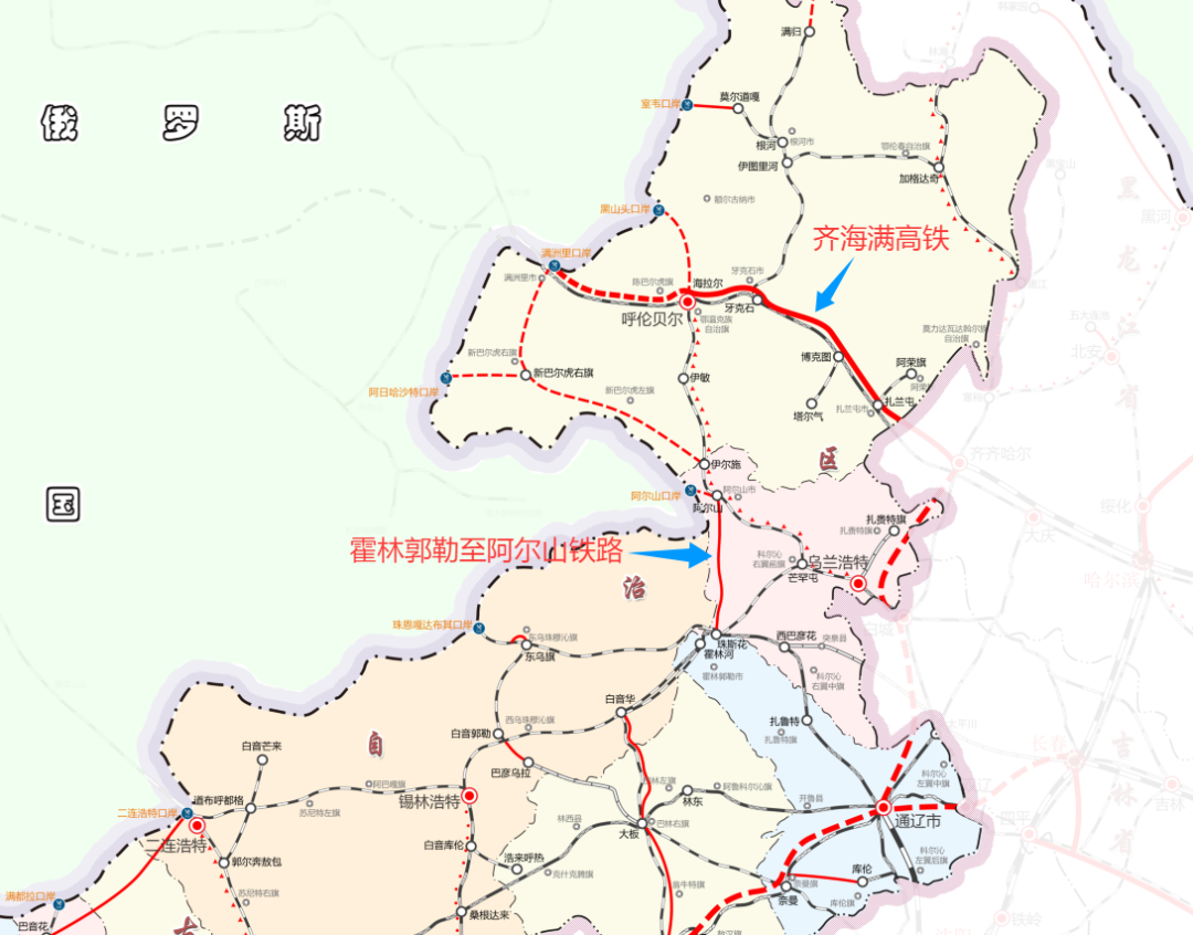 齐海满高铁全长约650公里,总投资738亿元,是“八纵八横”最北的一横、我国规划的最北高铁项目,其中齐齐哈尔至海拉尔段已纳入“十四五”研究项目,现已完成预可研方案研究,开工建设时间待定。