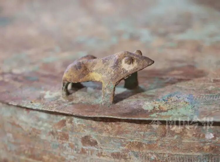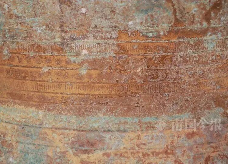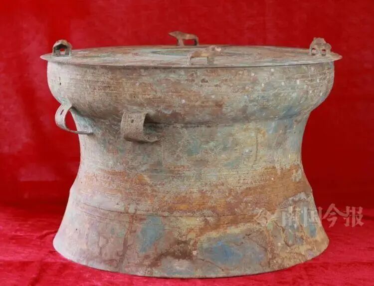 虽历经千年,并埋于地下,但轻轻敲击鼓面,鼓声依然清脆悦耳,仿若从千年前悠悠传来。
