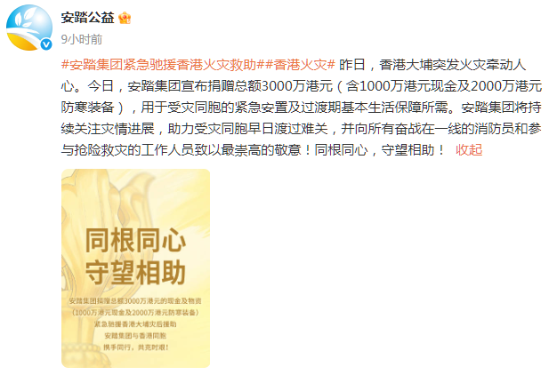 香港小米基金会捐赠1000万港元,紧急驰援香港大埔火灾救援。