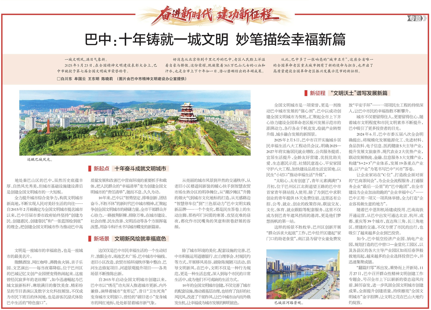 12月1日,四川日报推出《奋进新时代 建功新征程》策划报道,03版聚焦巴中文明城市创建工作成效。内容如下: