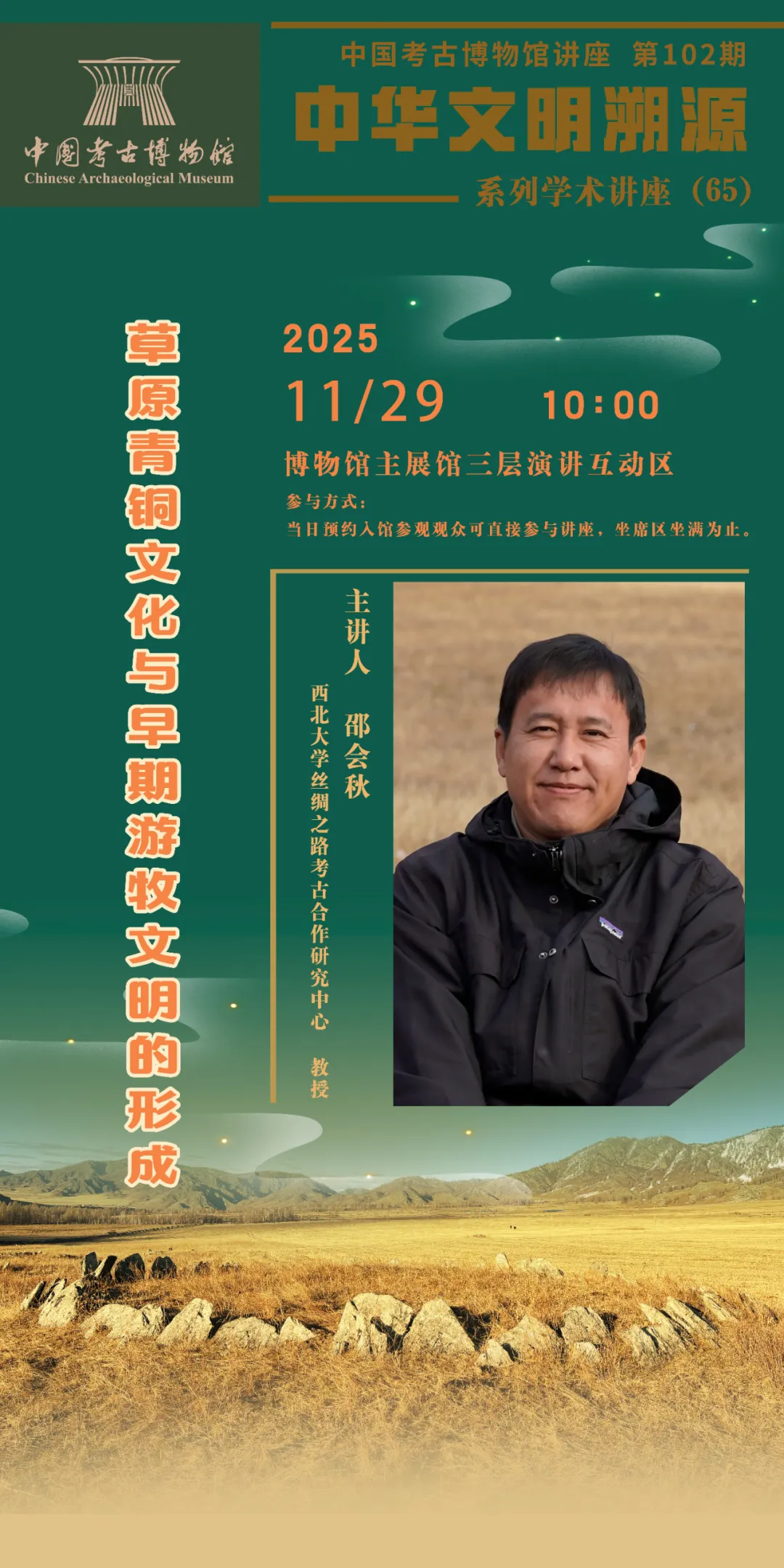 为推动中国考古文博事业高质量发展,更好认识源远流长、博大精深的中华文明,中国考古博物馆举办“中华文明溯源”系列学术讲座,邀请专家学者做客中国考古博物馆,与观众分享互动,聚焦关于中华文明起源与早期发展的重大考古发现和最新研究成果,为更好展示中华文明风采、弘扬中华优秀传统文化,建设中华民族现代文明贡献力量。敬请关注。