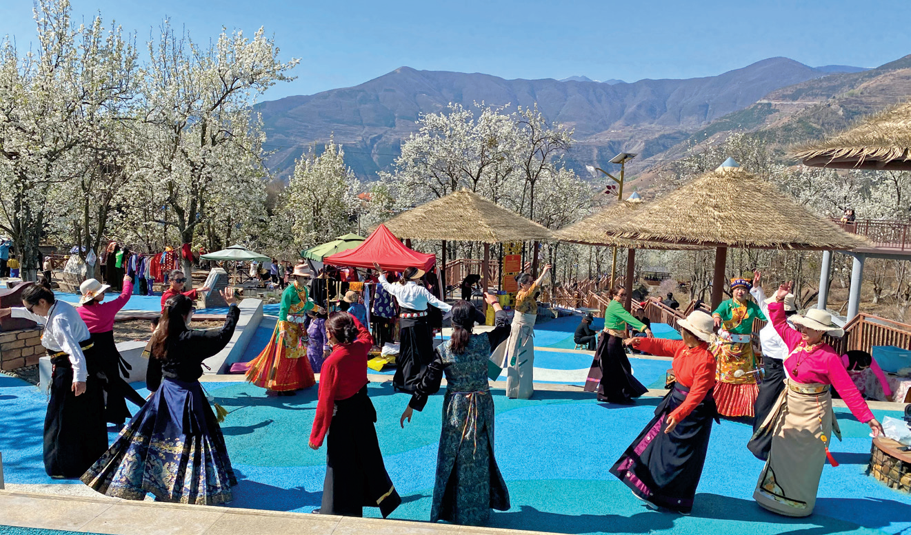 走在强村富民路上,藏族群众载歌载舞。