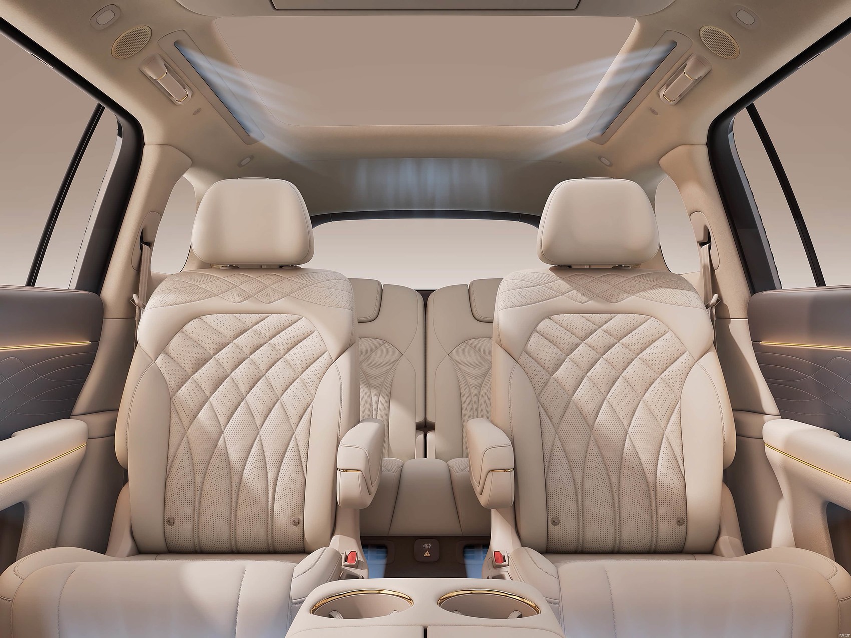 内饰方面,两款车型均展现出旗舰级的用料水准。智己LS9采用大地象灰主题内饰,提供深、浅两种配色可选,以豪华、舒适为核心。车内大面积采用Nappa真皮包裹,搭配金属镀铬条点缀,触感细腻温润。座椅采用IM Nappa DELUXE高定头层真皮,内部填充高密度海绵,并标配通风、加热和按摩功能。同时,智己LS9的三排六座座椅靠背均可调节角度,后排纯平地板设计让儿童可直立行走。后备箱常规容积为372L,最大可扩展至1030L。