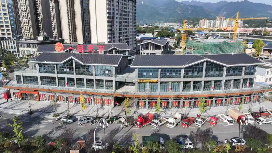走进旺苍县城孙家坝滨河路的“一品天下・特色商业街区”项目现场,塔吊林立,机械运转不息。工人们正紧锣密鼓地进行着多栋楼宇的外立面施工,金属与玻璃在阳光下交相辉映。目前,项目整体进度已超80%,部分已投入运营的楼栋商户生意火爆,尤其是“犇犇牛牛牛现切鲜牛肉烤串”等店家周末更是人气爆棚。预计春节前,所有商户将陆续开业,届时将重塑本地消费格局。