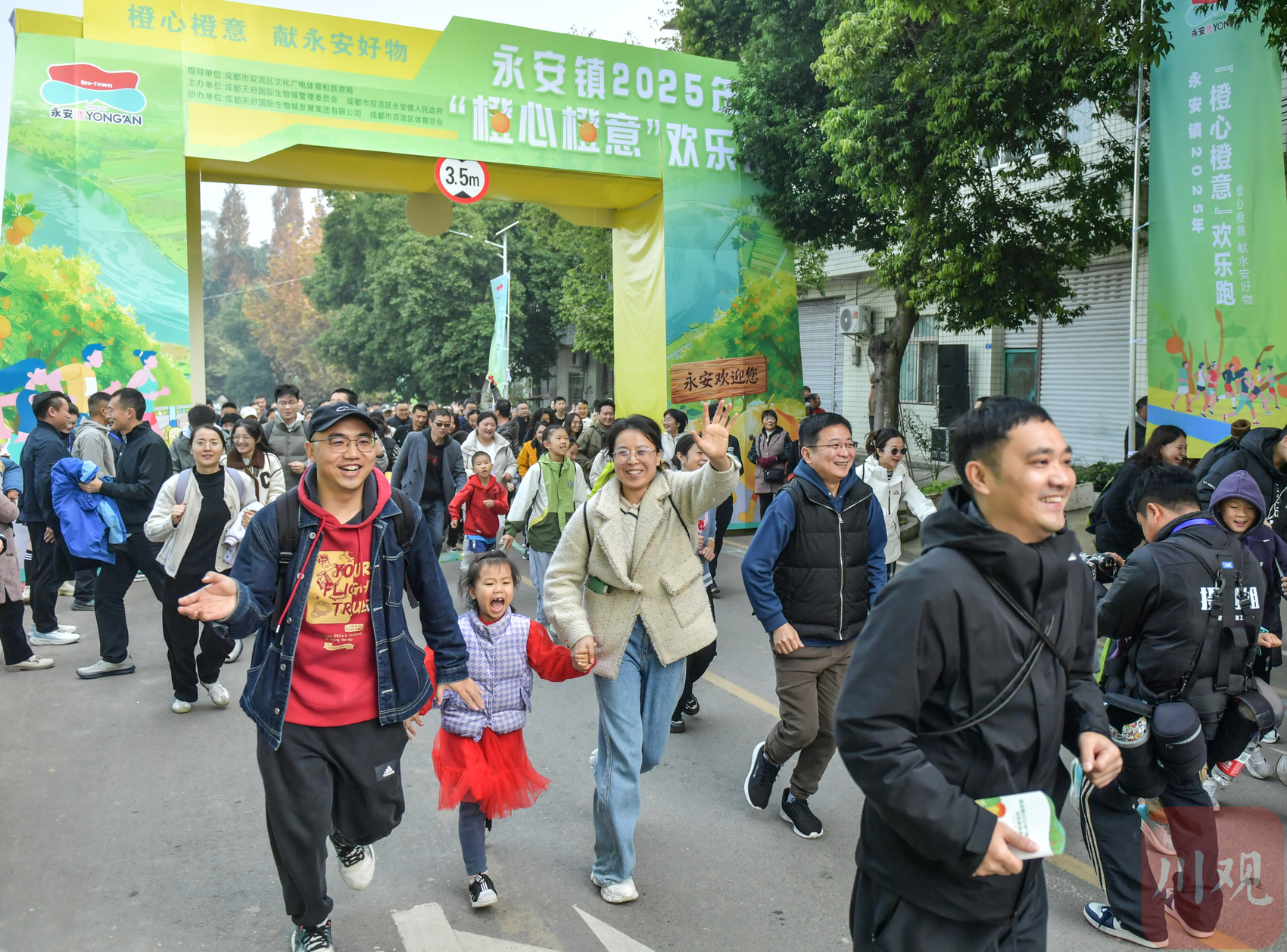 据双流区永安镇相关负责人介绍,本次活动以“橙”为媒介,结合柑橘丰收景观打造特色赛道,推广本地农产品;以“跑”为载体,依托低门槛的欢乐跑形式聚集人气,为乡村引流;以“非遗”为内涵,丰富活动文化体验,让参赛者和游客在自然风光之外,感受深厚的文化印记,是“体育+文旅+农业”融合发展的生动实践。