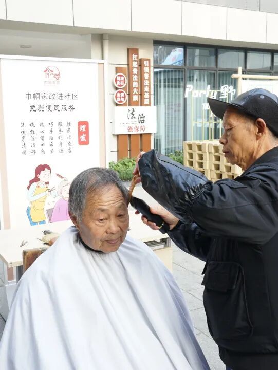 免费理发摊前,发型师细致地为老人们修剪头发,剪完瞬间精神焕发;缝补点上,家政人员一针一线为居民修补衣物,让旧衣重焕光彩;手工编织体验区里,大家踊跃咨询报名,想解锁新技能~ 更贴心的是,活动还专为女外卖员、女配送员设立了服务岗,准备了暖心包,让新业态女性感受到专属关怀!
