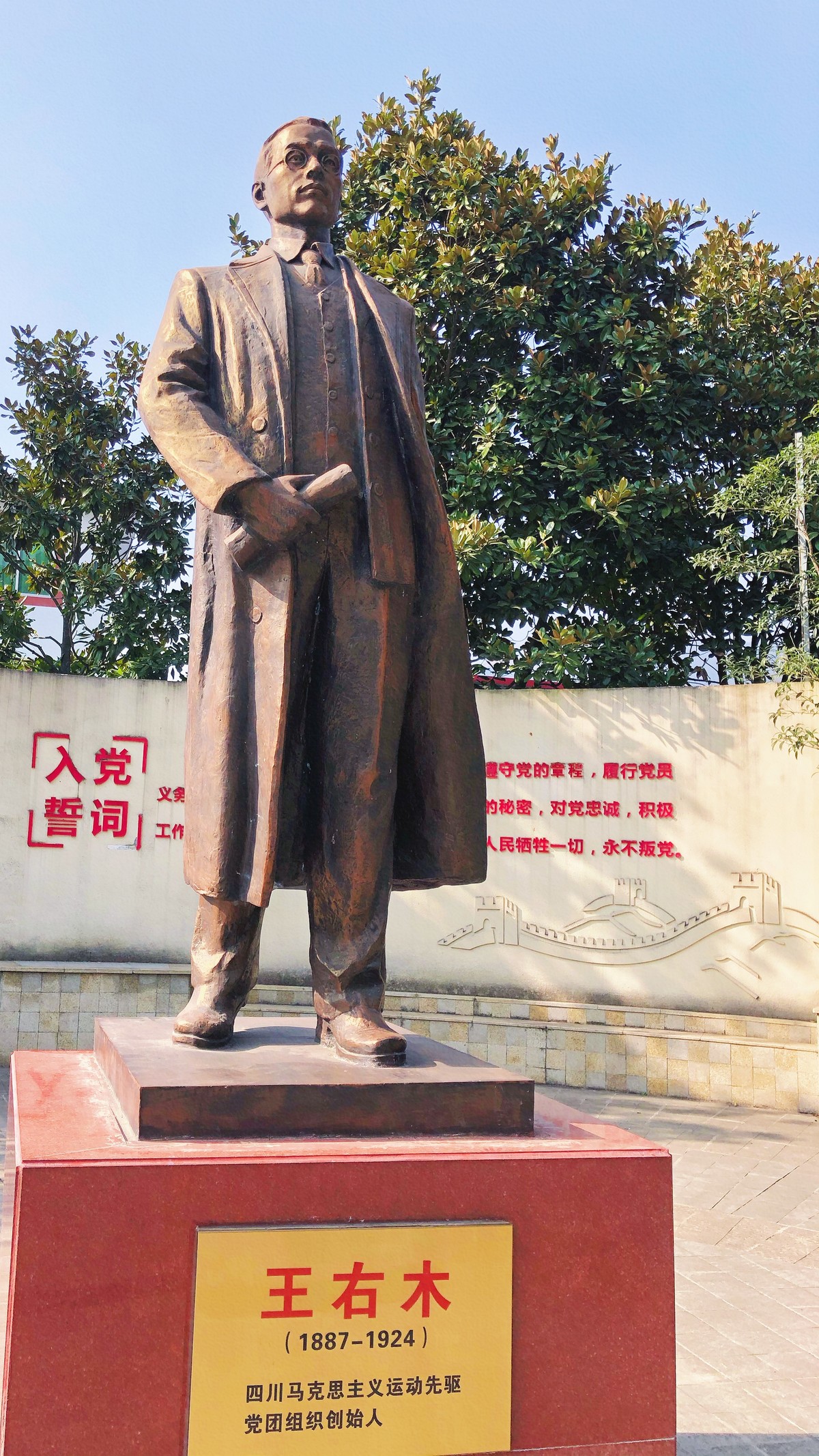 王右木,又名王丕昌、王燧,是四川江油市武都镇人。在日本留学期间,他受马克思主义思想影响,五四运动”前夕归国返回四川,以省城成都为中心进行革命活动,在37年光辉生涯里,王右木用短暂的一生创造了四川党史中的许多“首个”——他创办四川首个“马克思读书会”、开办四川首个专门宣传马克思主义的报纸、成立社会主义青年团成都地方执行委员会、创办中国共产党成都独立小组……王右木是四川马克思运动先驱、党团组织创始人。