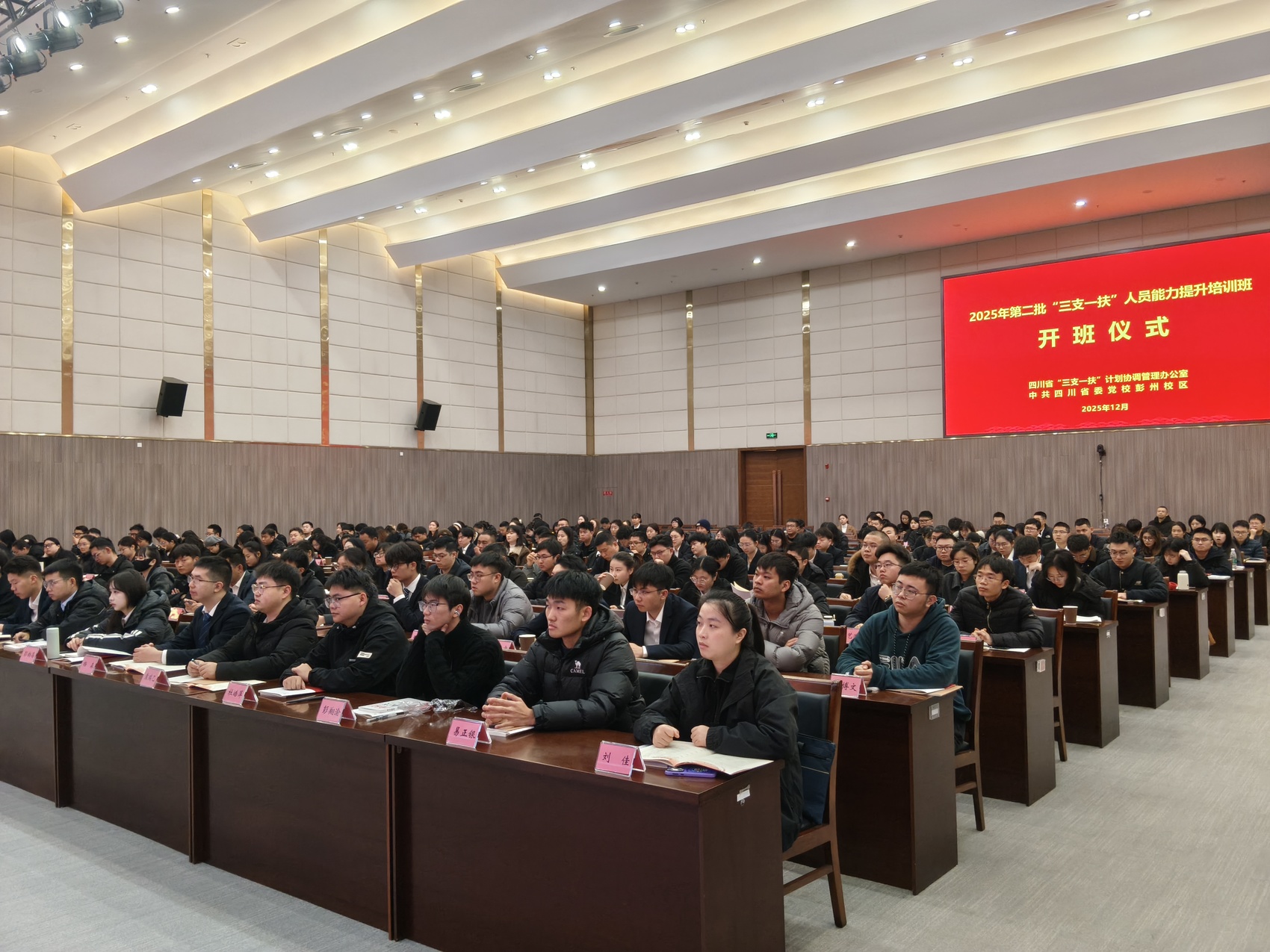 12月1日,四川省2025年第二批“三支一扶”人员能力提升培训班开班仪式在四川省委党校彭州校区举行,来自全省14个市(州)在岗优秀 “三支一扶” 人员,共280人参加培训。