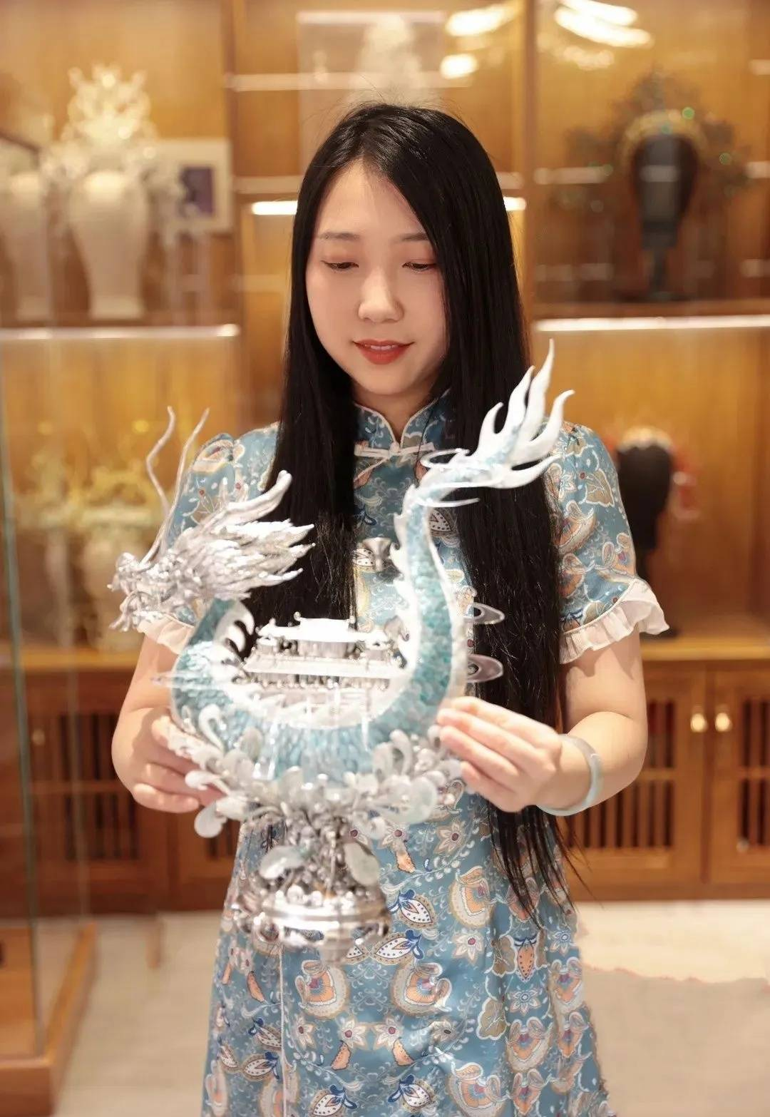 雁鸿告诉记者,此作品设计灵感源自一名网红古风插画师绘制的图片。之前,雁鸿用铜片制作过一次。在学了银花丝技艺后,她又做了升级版。“从画图、修改到调整技艺,常常推翻重做,断断续续花费了3年时间才全部制作完成。”精湛的手艺让雁鸿在网络上吸引了越来越多粉丝。这位来自成都市郫都区三道堰镇的博主“雁鸿Aimee”受到广泛追捧。“目前B站、抖音、快手、小红书、视频号等平台粉丝加起来有500多万。”雁鸿说。