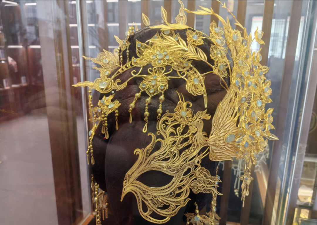 这段学习经历,令雁鸿的手工技艺有了很大进步,让她从一个手工爱好者变成了一个非遗手艺人。她开始研究如何用这门古老的技艺制作出受当代人喜爱的艺术作品。“我尝试将银花丝技艺融入更年轻化的设计,比如用它制作花环头饰,可以搭配很多年轻人喜欢的汉服。或者用银丝入画,制作国风插画,让画面更加富丽堂皇。”雁鸿说。在雁鸿拍摄过的视频作品中,她自己最满意的是用花丝镶嵌技艺完成的“半面妆”头饰。这件头饰形如一只展翅的金色凤凰,凤凰的头遮在模特左侧脸颊上,羽翼和尾巴延展成整个头饰,十分华美。