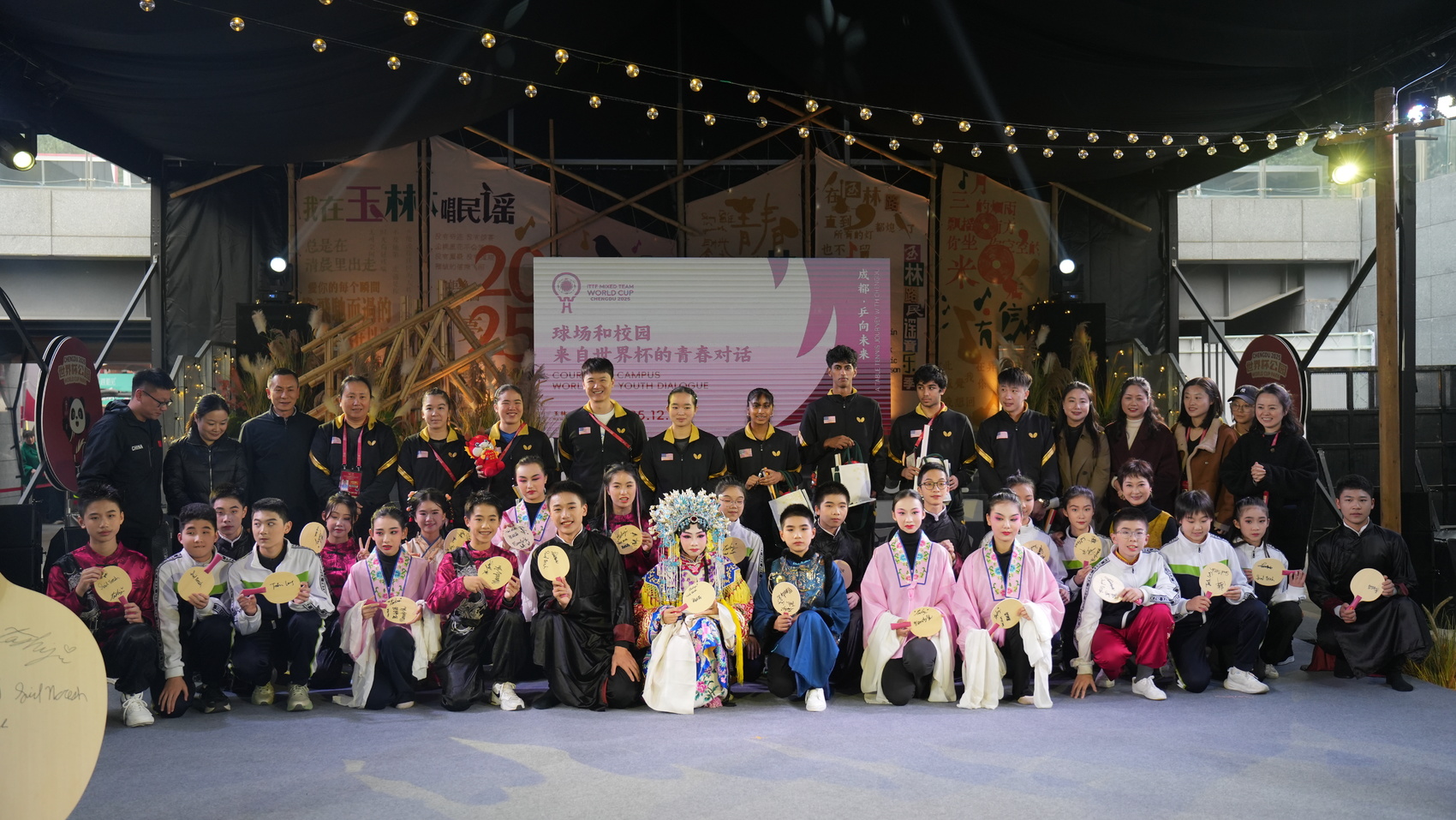 在青春对话环节,气氛轻松而真诚。学生们的问题聚焦于运动员们的训练生活、成长故事,以及对成都这座城市的印象。运动员们耐心解答,分享了他们与乒乓球结缘的难忘经历。“我们都喜欢乒乓球,”棕北中学学生贾子墨说,“不管来自哪里,这项运动都能让我们成为更好的朋友。”