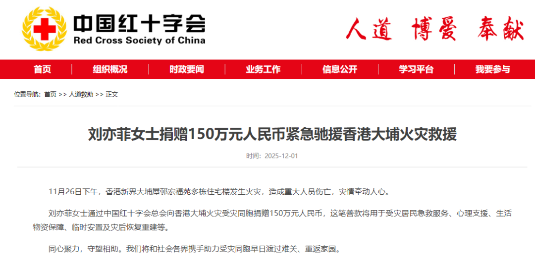 据中国红十字会介绍,刘亦菲捐赠的这笔善款将用于受灾居民急救服务、心理支援、生活物资保障、临时安置及灾后恢复重建等。