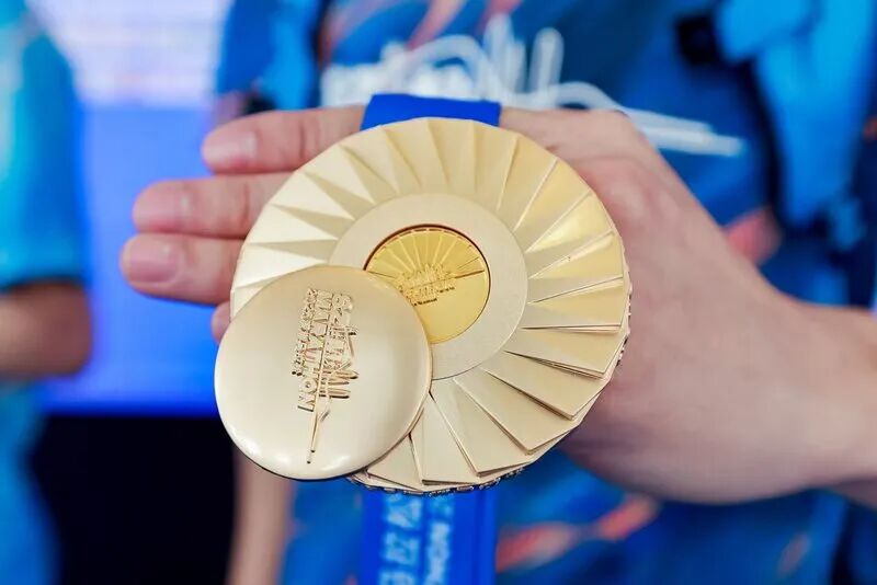 备受期待的完赛奖牌设计独特,暗藏滑盖玄机。轻轻一推,“咔哒”一声,里面还隐藏着一枚精美的金属纪念徽章。