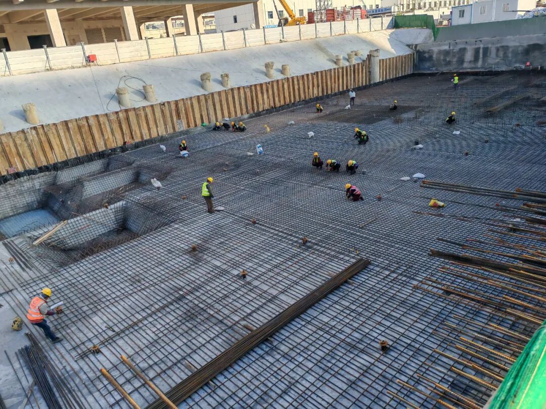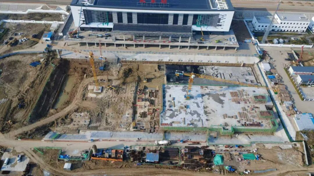 该项目是衔接高铁与城市交通的重要“转换器”,备受各界关注。目前,工程整体建设全面铺开,各项施工环节有序开展。地库主体结构及侧墙和顶板防水施工如火如荼进行,基坑支护及止水帷幕施工扎实推进,内部道路雨水支管施工加快落地,匝道桥承台及墩柱施工也在稳步实施。