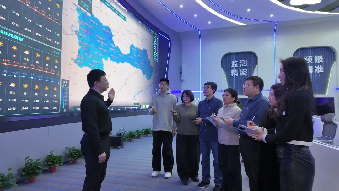 “高质量发展中国行·新时代的气象万千”中央媒体走基层主题采访报道组在辽宁省本溪市气象局了解本溪智慧气象服务平台。 图/邢建民 文/赵宁