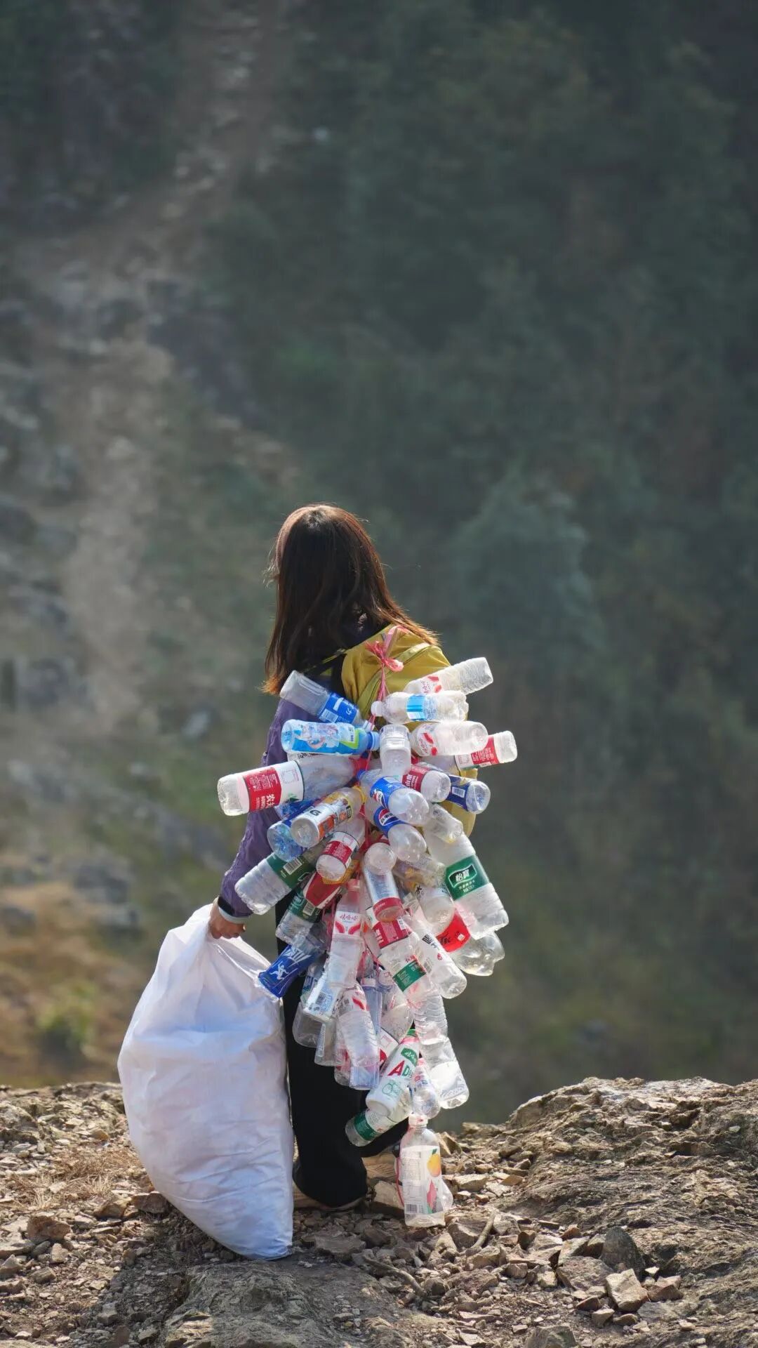 近日,一位全身挂满塑料瓶跑下山的女孩子,时常出现在各大社交平台上,并吸引了不少人的关注。视频里,她把数十个塑料瓶串在一起背在身上,双手还提着两个装满垃圾的蛇皮袋,迈着小碎步飞快跑下山,洋溢着的既是青春活力,更是对环保的践行。网友们也纷纷为她点赞,更多人则希望知道,这位又飒又棒的“环保小姐姐”到底是谁?又有着怎样的故事?