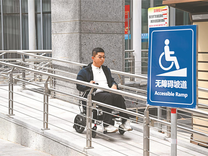 调整好坐姿、握住轮圈,一路上,沿途连续设置的无障碍坡道让道路衔接平顺,整体通行环境令人感到友善与便利。这种流畅的体验,让记者体验到城市无障碍建设的完善与进步。