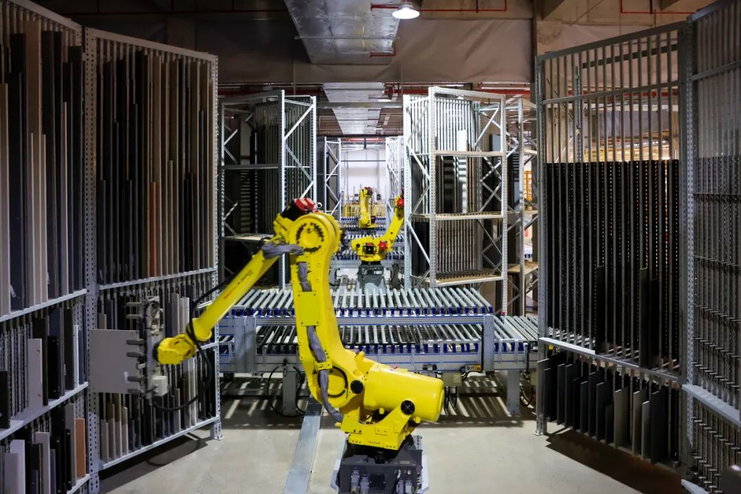 走进志邦家居的4.0智能工厂,仿佛闯入一部科技大片的拍摄现场:智能立体原料仓中,板材“随叫随到”;机械臂灵活挥舞,完成从切割到分包的连贯动作;AI视觉检测系统像一位不知疲倦的“质检员”,以0.5毫米的精度为每一块板材精准“体检”。其中最酷的,莫过于“一板一码”全流程追溯系统——每块板材都拥有独一无二的“身份证”,从生产线出发,直到走进千家万户,全程动态可查、可控、可溯。