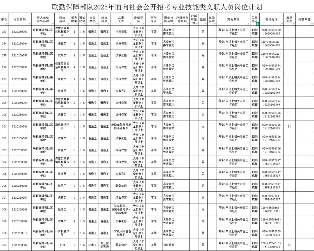 根据《中国人民解放军文职人员条例》及有关政策规定,现将联勤保障部队2025年专业技能类文职人员公开招考有关事项公告如下:
