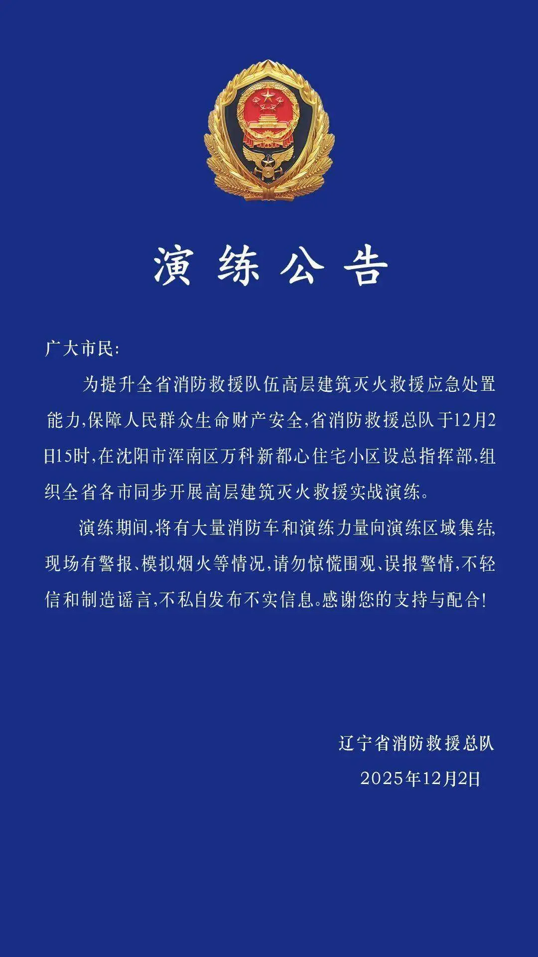 为提升全省消防救援队伍高层建筑灭火救援应急处置能力,保障人民群众生命财产安全,省消防救援总队于12月2日15时,在沈阳市浑南区万科新都心住宅小区设总指挥部,组织全省各市同步开展高层建筑灭火救援实战演练。