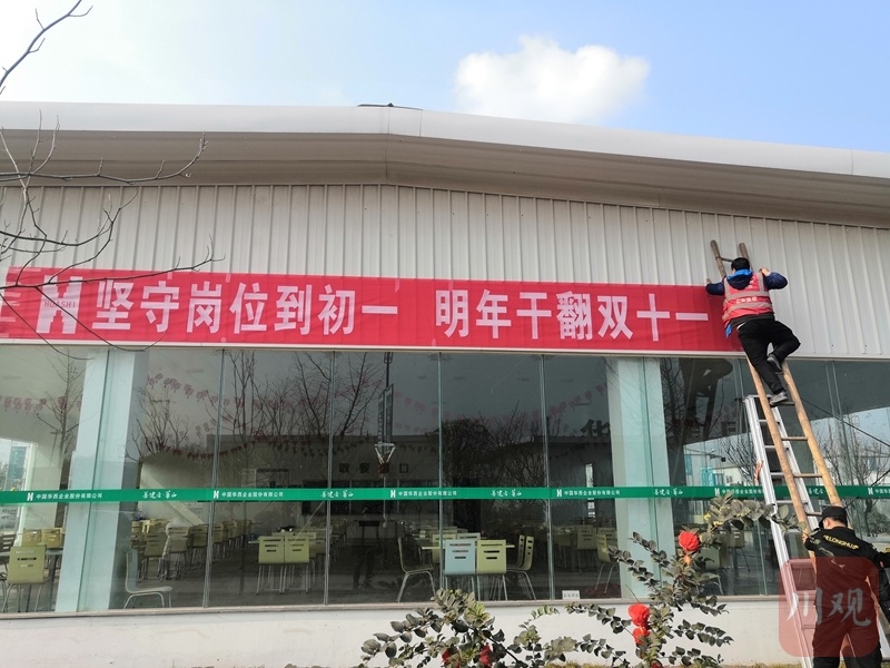 “一般来讲,过年都想回家,但是一方面是工期紧,一方面是防疫形势,我们积极倡导大家原地过年。”作为平时喜欢听相声、喜欢说俏皮话的80后,多年来,陈萌积累了大量的“段子”素材。“我们这里基本上都是八零后九零后为主,对于这种俏皮幽默的横幅,大家比较易于接受。”