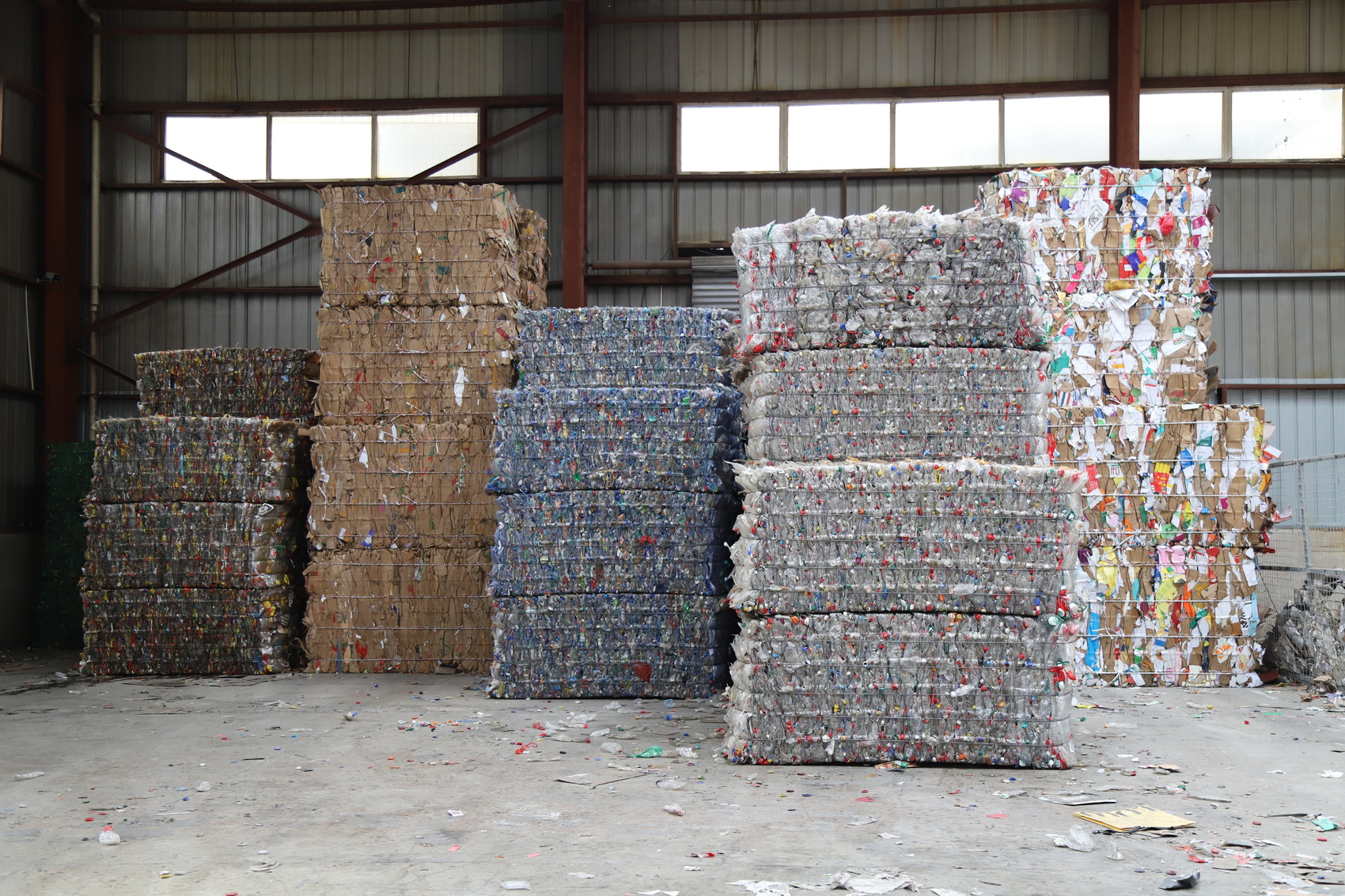不同垃圾分类、分色分拣后被压缩成块。唐茜 摄