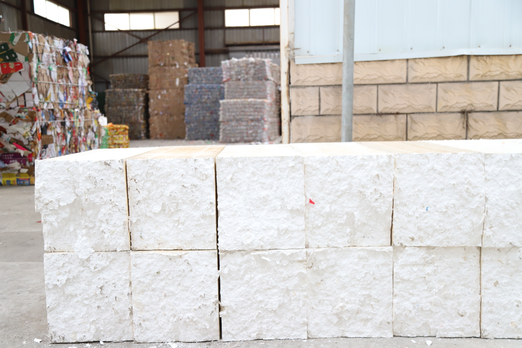 塑料泡沫压缩后成为高价值再生资源。唐茜 摄